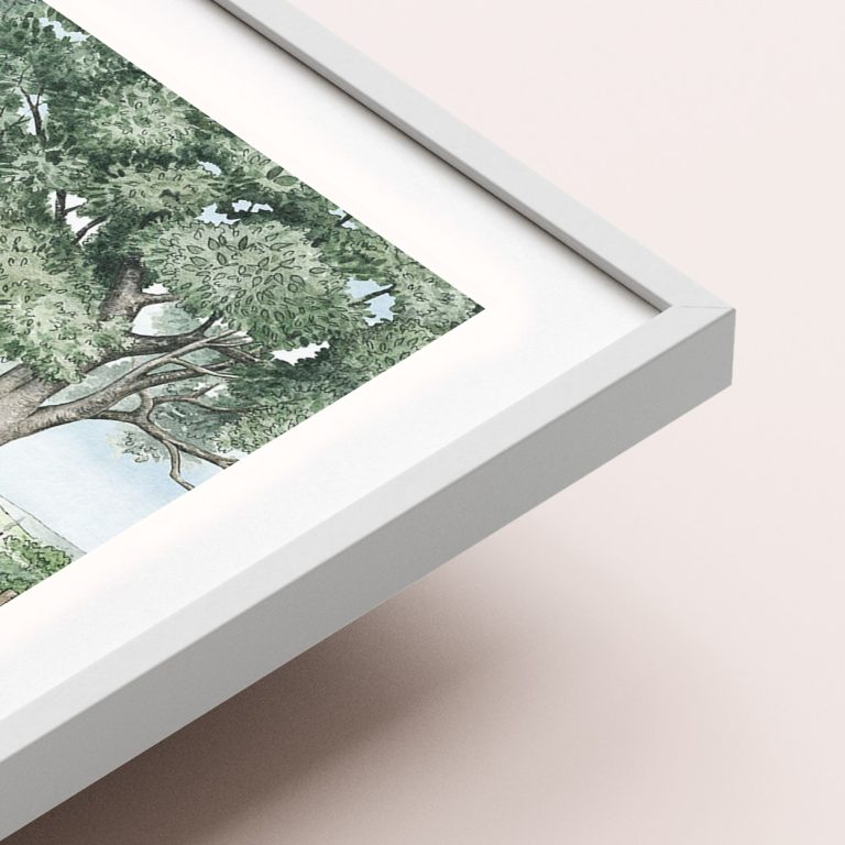 Η κάθε διάσταση εκτύπωσης έχει και την δική της διάσταση περιθωρίου (Passpartout). Παρακαλώ ανατρέξτε στον πίνακα που αναγράφονται αναλυτικά οι διαστάσεις, ώστε να επιλέξετε αυτό που σας ταιριάζει καλύτερα. Η κορνίζα που χρησιμοποιούμε είναι από ξύλο πεύκου και πάχους 17mm x 17mm, και μπορείτε να επιλέξετε χρώμα ανάμεσα σε λευκό, μαύρο και χρώμα του ξύλου ανοιχτό.