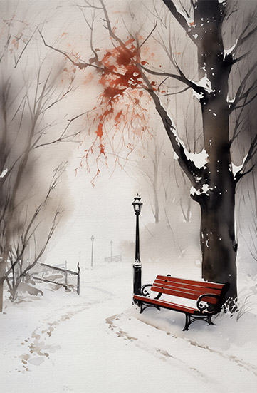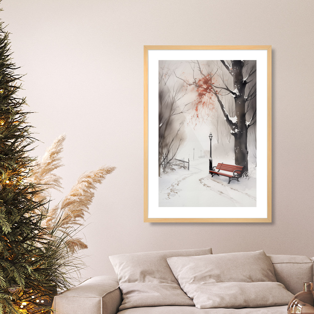 Ποστερ – Αφίσα Κόκκινο Παγκάκι στο Χιόνι – Decotek 33919