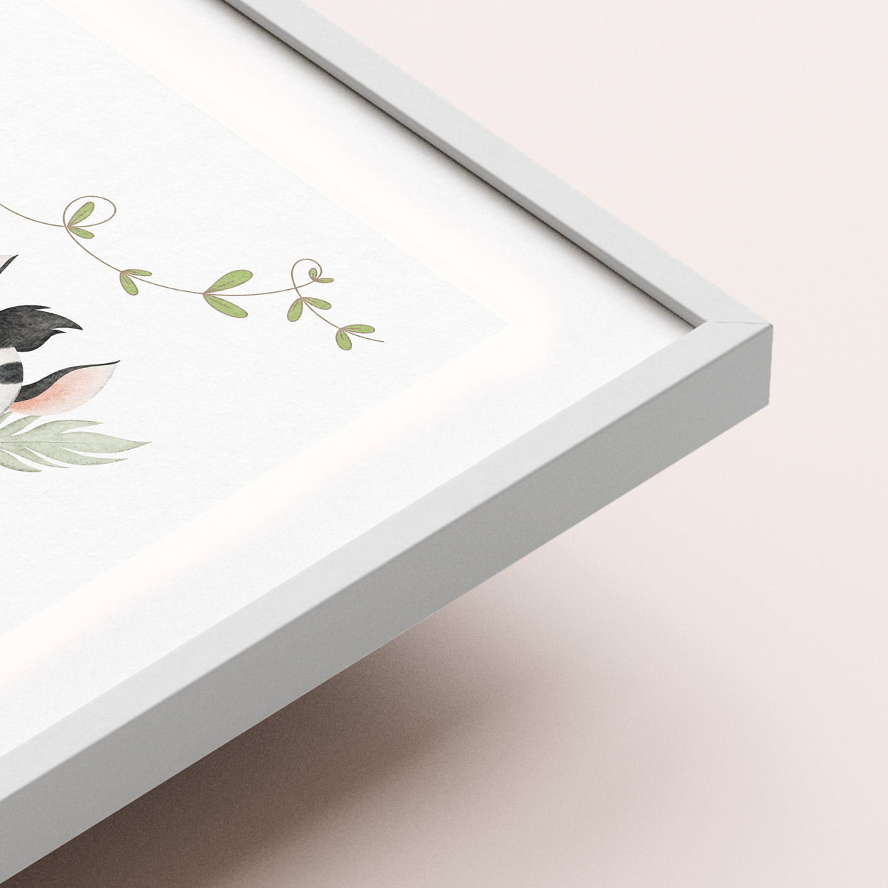Η εκτύπωση γίνεται με eco μελάνια σε χαρτί υψηλής ποιότητας 200gr. με ματ φινίρισμα και η κορνίζα είναι από ξύλο πεύκου και πάχους 17mm x 17mm.