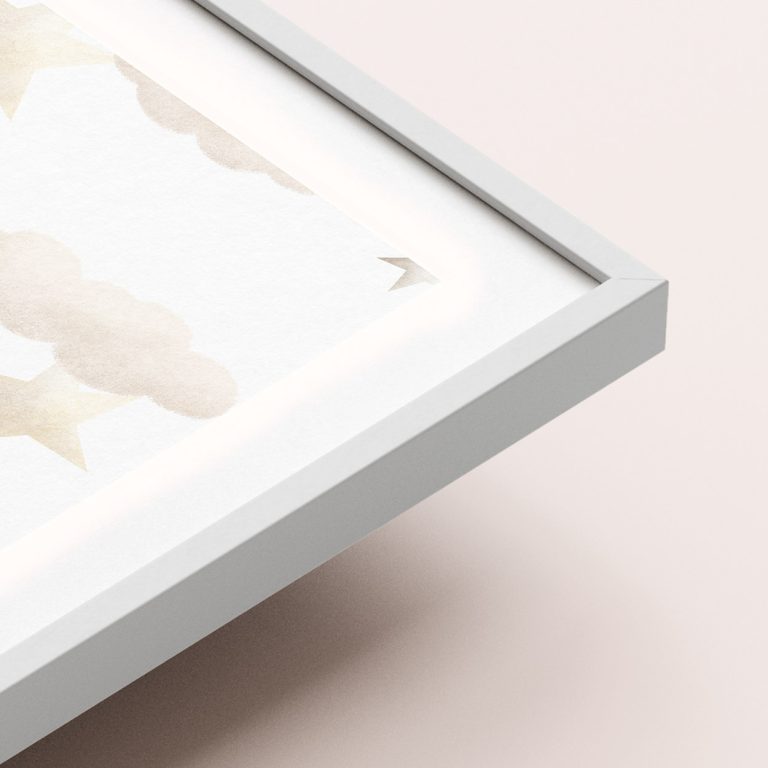 Η εκτύπωση γίνεται με eco μελάνια σε χαρτί υψηλής ποιότητας 200gr. με ματ φινίρισμα και η κορνίζα είναι από ξύλο πεύκου και πάχους 17mm x 17mm.