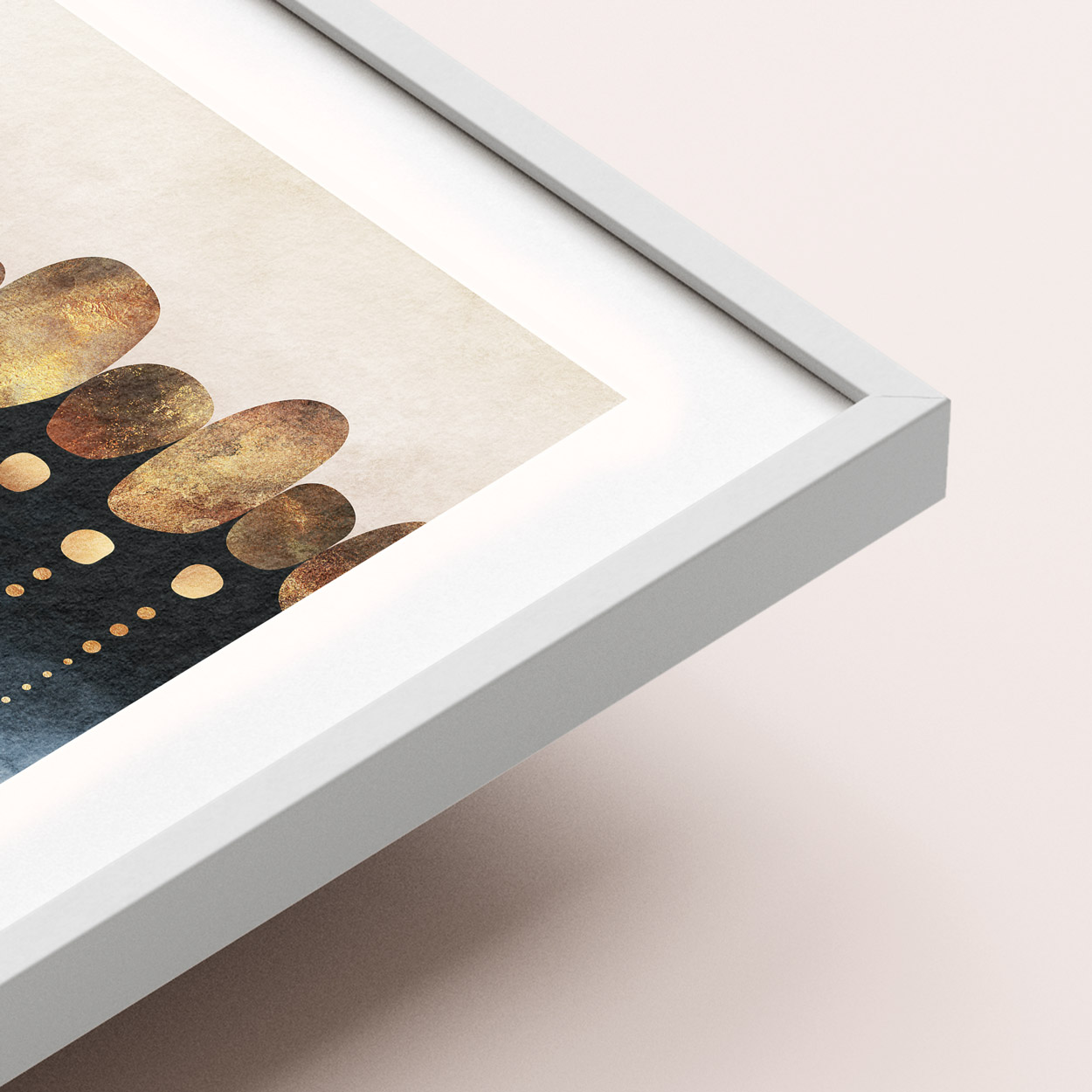 Η εκτύπωση γίνεται με eco μελάνια σε χαρτί υψηλής ποιότητας 200gr. με ματ φινίρισμα και η κορνίζα είναι από ξύλο πεύκου και πάχους 17mm x 17mm.