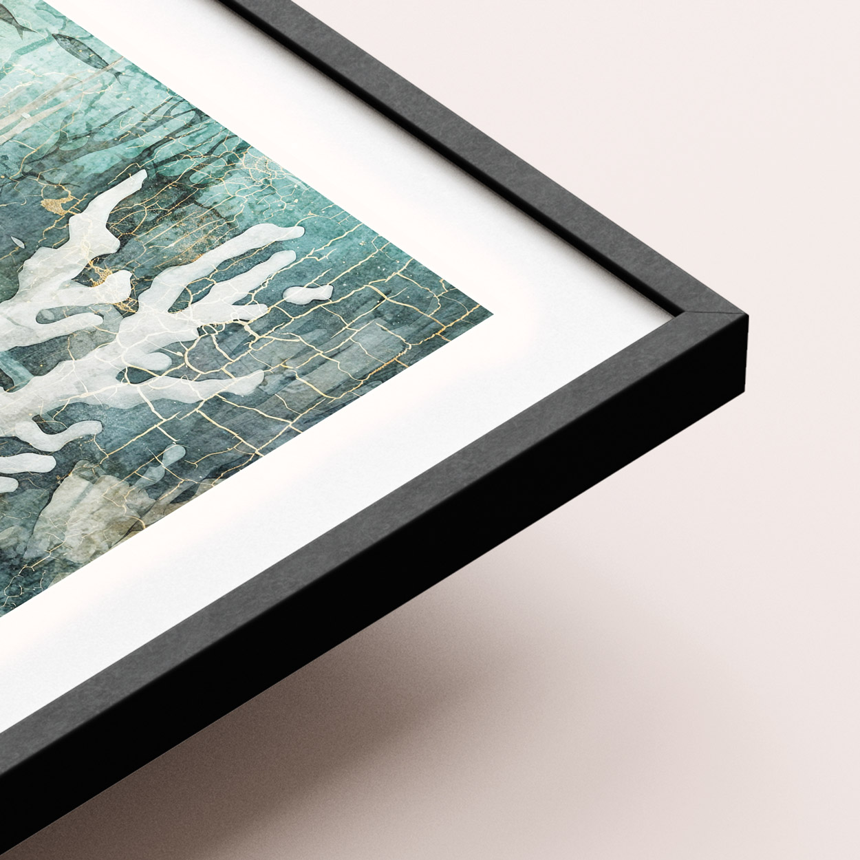Η εκτύπωση γίνεται με eco μελάνια σε χαρτί υψηλής ποιότητας 200gr. με ματ φινίρισμα και η κορνίζα είναι από ξύλο πεύκου και πάχους 17mm x 17mm.