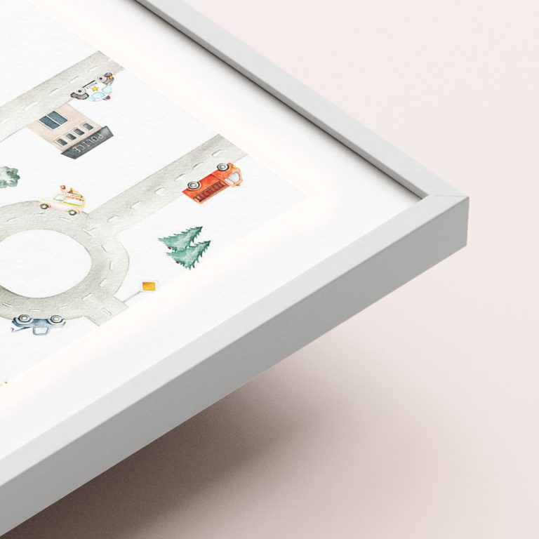 Η εκτύπωση γίνεται με eco μελάνια σε χαρτί υψηλής ποιότητας 200gr. με ματ φινίρισμα και η κορνίζα είναι από ξύλο πεύκου και πάχους 17mm x 17mm.