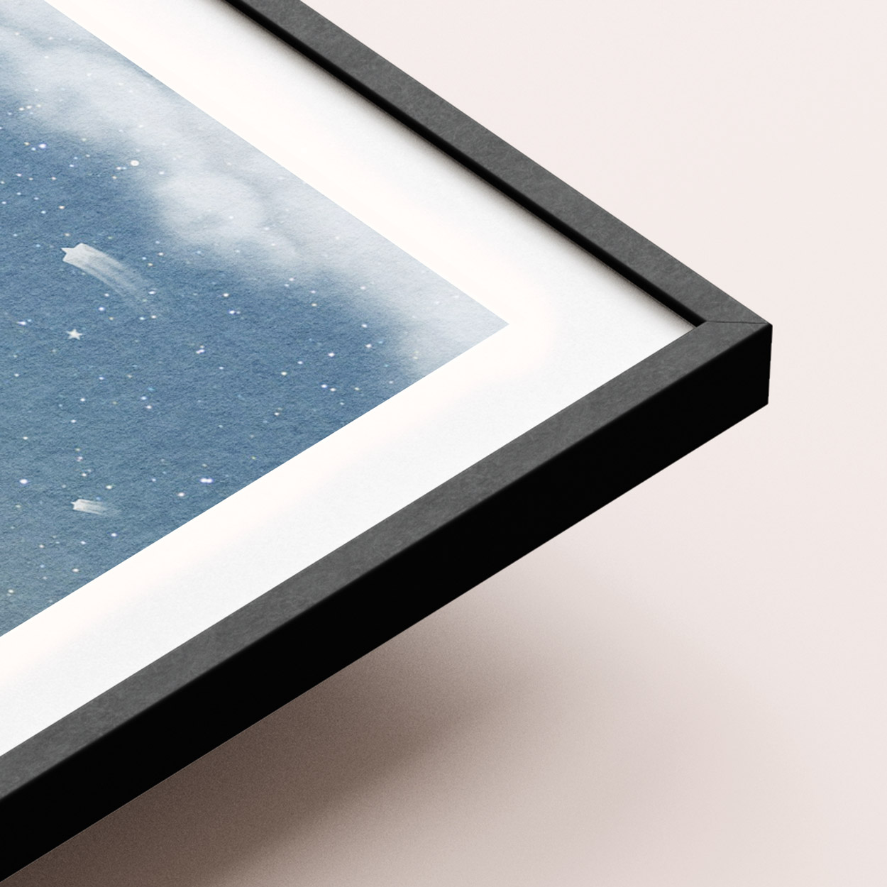 Η εκτύπωση γίνεται με eco μελάνια σε χαρτί υψηλής ποιότητας 200gr. με ματ φινίρισμα και η κορνίζα είναι από ξύλο πεύκου και πάχους 17mm x 17mm.