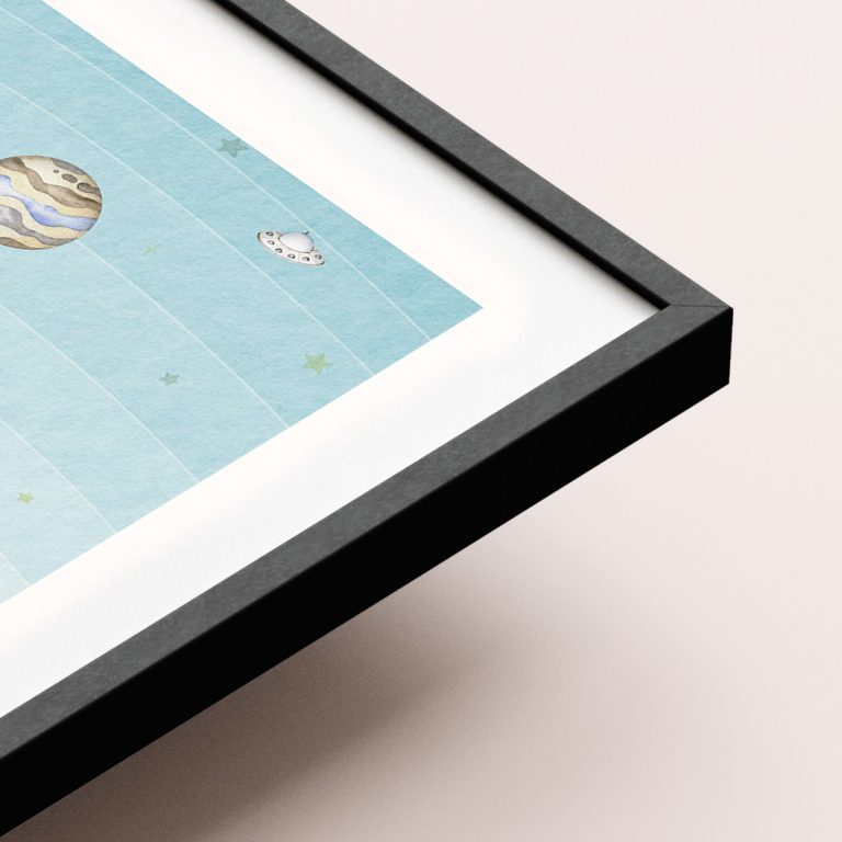 Η εκτύπωση γίνεται με eco μελάνια σε χαρτί υψηλής ποιότητας 200gr. με ματ φινίρισμα και η κορνίζα είναι από ξύλο πεύκου και πάχους 17mm x 17mm.