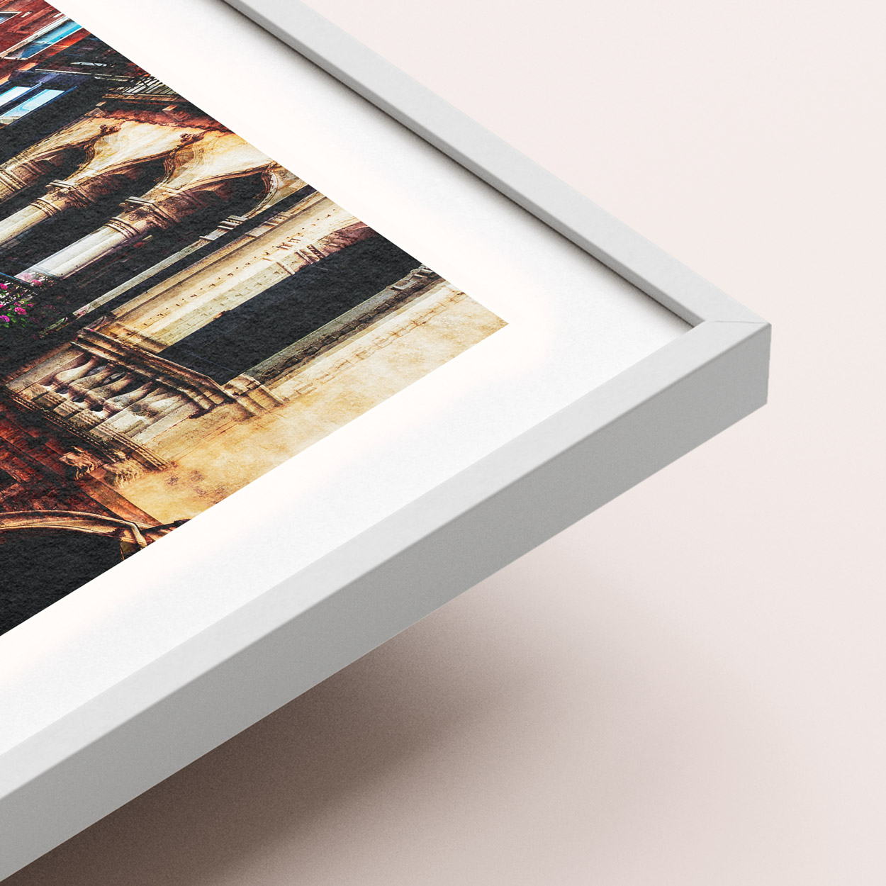 Η κάθε διάσταση εκτύπωσης έχει και την δική της διάσταση περιθωρίου (Passpartout). Παρακαλώ ανατρέξτε στον πίνακα που αναγράφονται αναλυτικά οι διαστάσεις, ώστε να επιλέξετε αυτό που σας ταιριάζει καλύτερα. Η κορνίζα που χρησιμοποιούμε είναι από ξύλο πεύκου και πάχους 17mm x 17mm, και μπορείτε να επιλέξετε χρώμα ανάμεσα σε λευκό, μαύρο και χρώμα του ξύλου ανοιχτό.