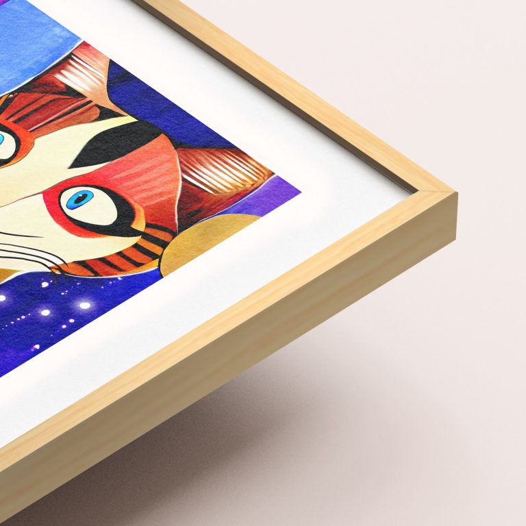 Η εκτύπωση γίνεται με eco μελάνια σε χαρτί υψηλής ποιότητας 200gr. με ματ φινίρισμα και η κορνίζα είναι από ξύλο πεύκου και πάχους 17mm x 17mm.