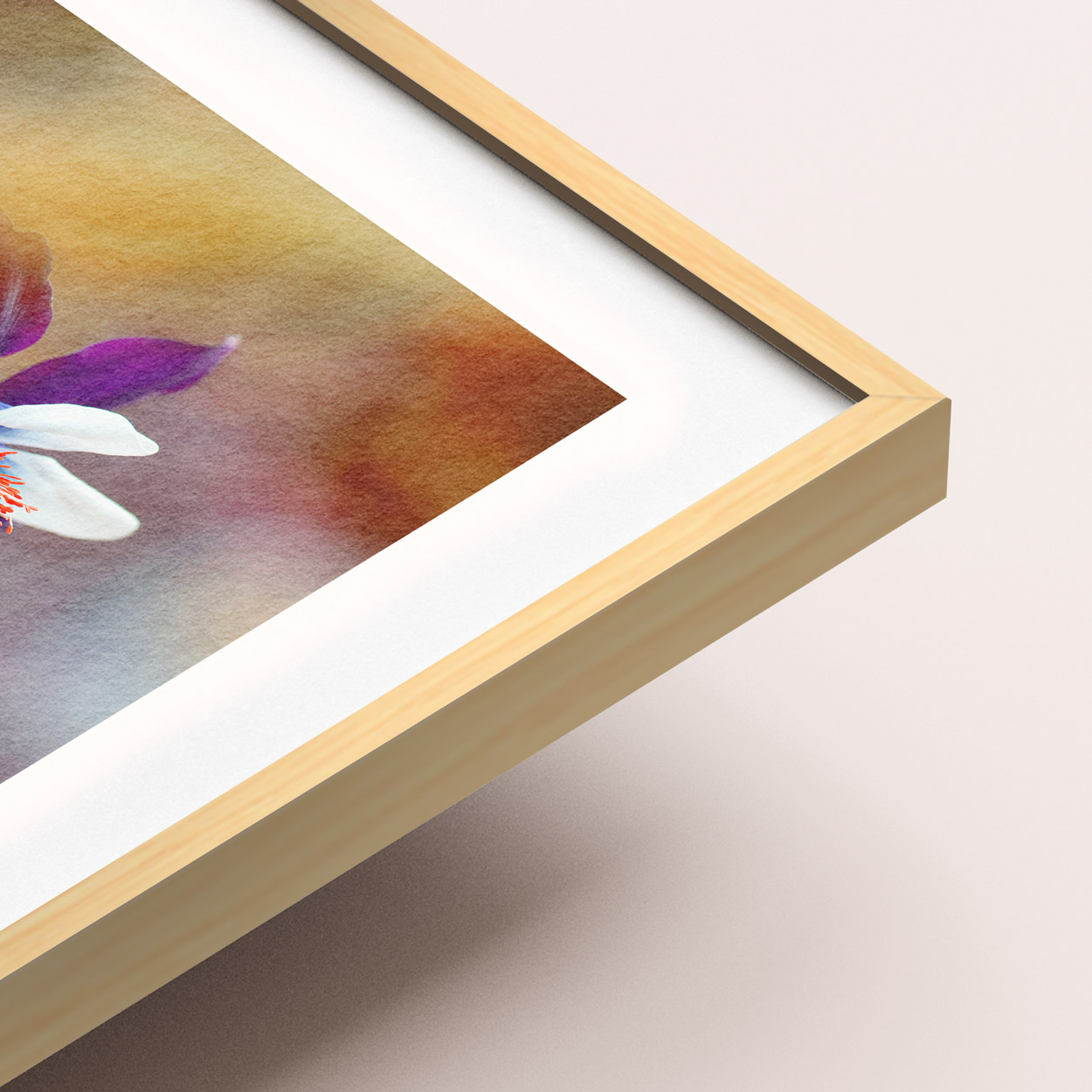 Η κάθε διάσταση εκτύπωσης έχει και την δική της διάσταση περιθωρίου (Passpartout). Παρακαλώ ανατρέξτε στον πίνακα που αναγράφονται αναλυτικά οι διαστάσεις, ώστε να επιλέξετε αυτό που σας ταιριάζει καλύτερα. Η κορνίζα που χρησιμοποιούμε είναι από ξύλο πεύκου και πάχους 17mm x 17mm, και μπορείτε να επιλέξετε χρώμα ανάμεσα σε λευκό, μαύρο και χρώμα του ξύλου ανοιχτό.