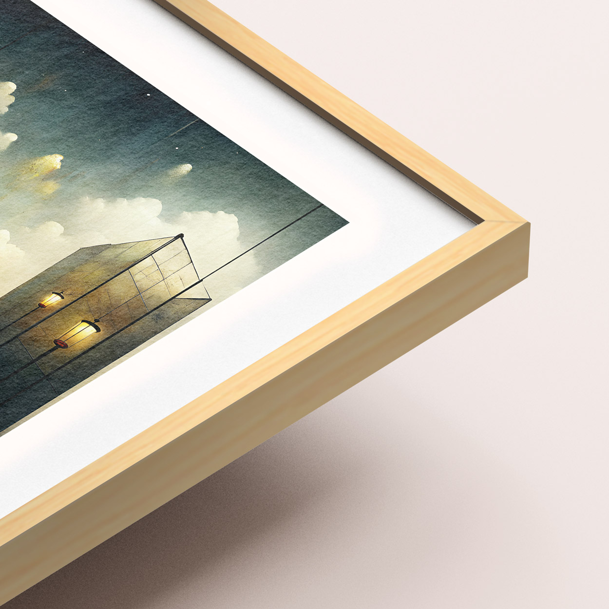 Η Αφίσα εκτυπώνεται με eco μελάνια, σε χαρτί κορυφαίας ποιότητας 200gr. και έχει ένα καταπληκτικό ματ φινίρισμα που ταιριάζει με όλα τα σχέδια της συλλογής μας. Το λευκό περιθώριο (Passpartout) αποτελεί την χάρτινη γέφυρα μεταξύ του έργου και του πλαισίου εστιάζοντας στο θέμα και ομαλοποιεί τη μετάβαση από το κέντρο προς τον ευρύτερο χώρο ενισχύοντας τις διακοσμητικές ιδιότητες του. Η κάθε διάσταση εκτύπωσης έχει και την δική της διάσταση περιθωρίου (Passpartout). Παρακαλώ ανατρέξτε στον πίνακα που αναγράφονται αναλυτικά οι διαστάσεις, ώστε να επιλέξετε αυτό που σας ταιριάζει καλύτερα. Η κορνίζα που χρησιμοποιούμε είναι από ξύλο πεύκου και πάχους 17mm x 17mm, και μπορείτε να επιλέξετε χρώμα ανάμεσα σε λευκό, μαύρο και χρώμα του ξύλου ανοιχτό. To plexiglass στην μπροστά όψη είναι ανθεκτικό και διάφανο στα 2mm, η πλάτη είναι από mdf και στο πίσω μέρος υπάρχει και το μεταλλικό κλιπ κρέμασης.