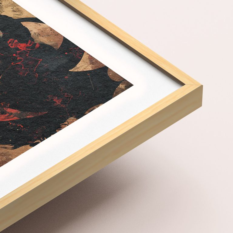 Η εκτύπωση γίνεται με eco μελάνια σε χαρτί υψηλής ποιότητας 200gr. με ματ φινίρισμα και η κορνίζα είναι από ξύλο πεύκου και πάχους 17mm x 17mm.