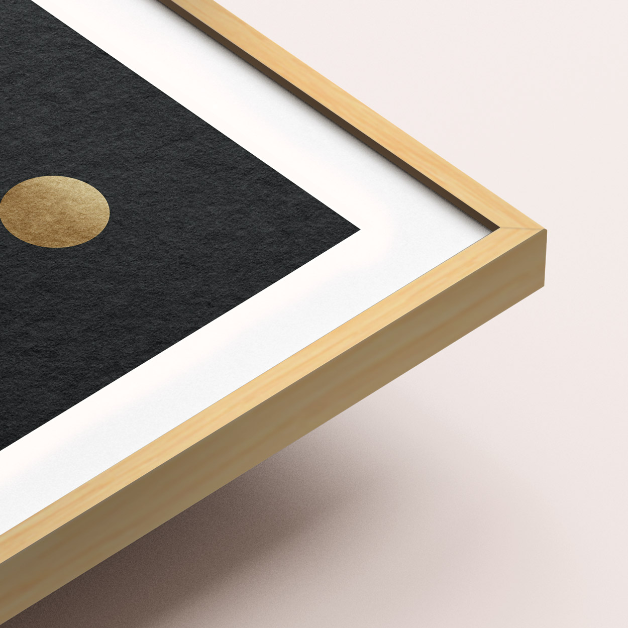 Η Αφίσα εκτυπώνεται με eco μελάνια, σε χαρτί κορυφαίας ποιότητας 200gr. και έχει ένα καταπληκτικό ματ φινίρισμα που ταιριάζει με όλα τα σχέδια της συλλογής μας. Το λευκό περιθώριο (Passpartout) αποτελεί την χάρτινη γέφυρα μεταξύ του έργου και του πλαισίου εστιάζοντας στο θέμα και ομαλοποιεί τη μετάβαση από το κέντρο προς τον ευρύτερο χώρο ενισχύοντας τις διακοσμητικές ιδιότητες του. Η κάθε διάσταση εκτύπωσης έχει και την δική της διάσταση περιθωρίου (Passpartout). Παρακαλώ ανατρέξτε στον πίνακα που αναγράφονται αναλυτικά οι διαστάσεις, ώστε να επιλέξετε αυτό που σας ταιριάζει καλύτερα. Η κορνίζα που χρησιμοποιούμε είναι από ξύλο πεύκου και πάχους 17mm x 17mm, και μπορείτε να επιλέξετε χρώμα ανάμεσα σε λευκό, μαύρο και χρώμα του ξύλου ανοιχτό. To plexiglass στην μπροστά όψη είναι ανθεκτικό και διάφανο στα 2mm, η πλάτη είναι από mdf και στο πίσω μέρος υπάρχει και το μεταλλικό κλιπ κρέμασης.