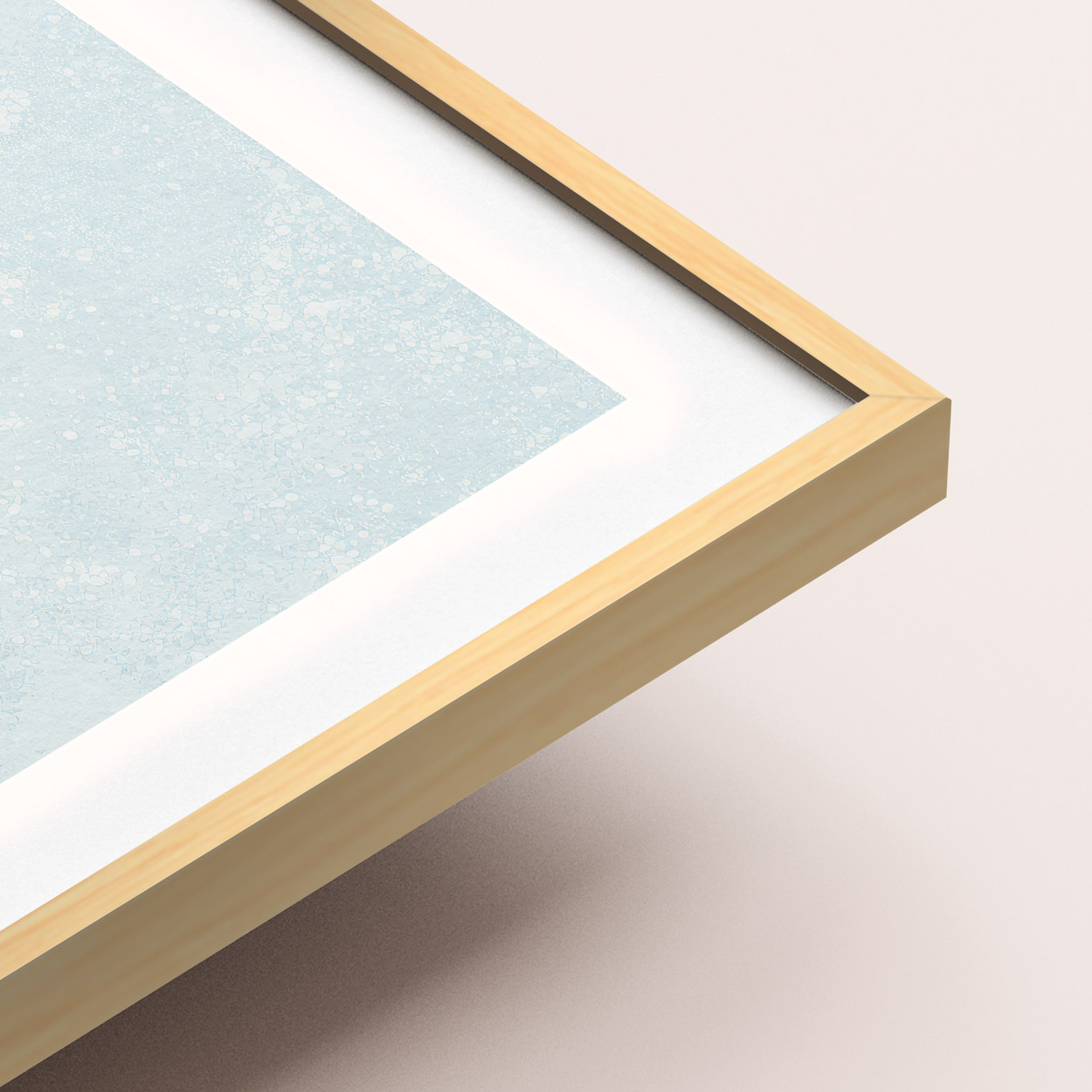 Η εκτύπωση γίνεται με eco μελάνια σε χαρτί υψηλής ποιότητας 200gr. με ματ φινίρισμα και η κορνίζα είναι από ξύλο πεύκου και πάχους 17mm x 17mm.