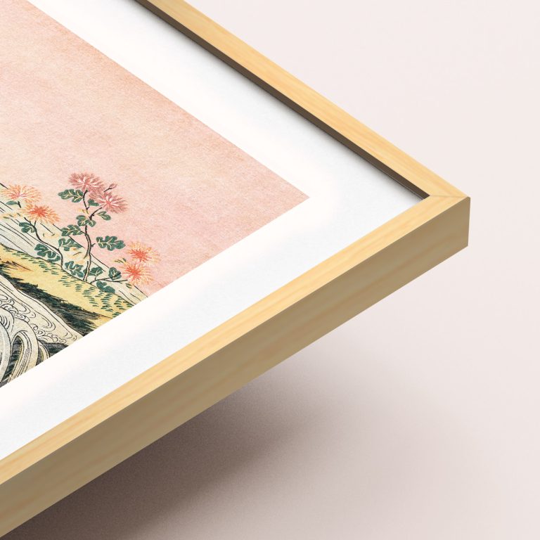 Η εκτύπωση γίνεται με eco μελάνια σε χαρτί υψηλής ποιότητας 200gr. με ματ φινίρισμα και η κορνίζα είναι από ξύλο πεύκου και πάχους 17mm x 17mm.