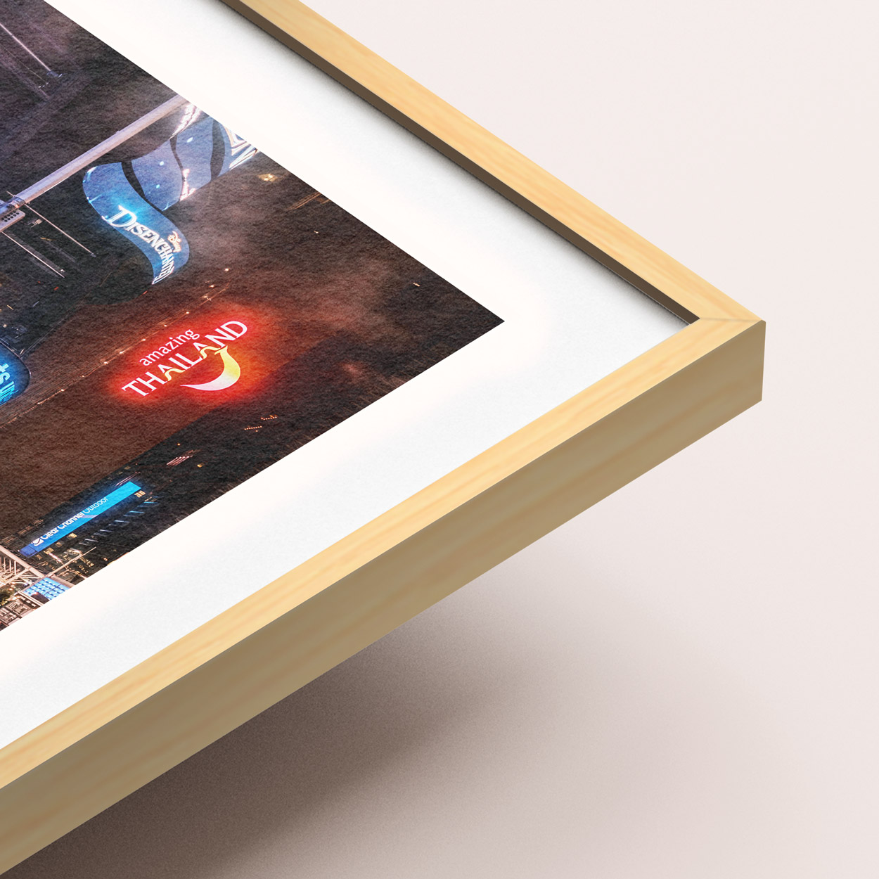 Η εκτύπωση γίνεται με eco μελάνια σε χαρτί υψηλής ποιότητας 200gr. με ματ φινίρισμα και η κορνίζα είναι από ξύλο πεύκου και πάχους 17mm x 17mm.