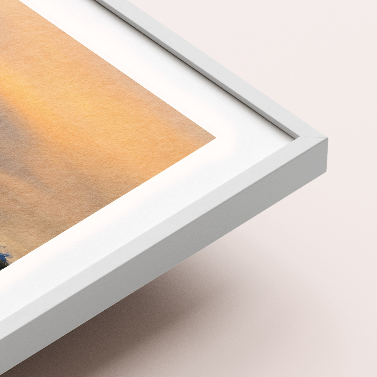 Η Αφίσα εκτυπώνεται με eco μελάνια, σε χαρτί κορυφαίας ποιότητας 200gr. και έχει ένα καταπληκτικό ματ φινίρισμα που ταιριάζει με όλα τα σχέδια της συλλογής μας. Το λευκό περιθώριο (Passpartout) αποτελεί την χάρτινη γέφυρα μεταξύ του έργου και του πλαισίου εστιάζοντας στο θέμα και ομαλοποιεί τη μετάβαση από το κέντρο προς τον ευρύτερο χώρο ενισχύοντας τις διακοσμητικές ιδιότητες του. Η κάθε διάσταση εκτύπωσης έχει και την δική της διάσταση περιθωρίου (Passpartout). Παρακαλώ ανατρέξτε στον πίνακα που αναγράφονται αναλυτικά οι διαστάσεις, ώστε να επιλέξετε αυτό που σας ταιριάζει καλύτερα. Η κορνίζα που χρησιμοποιούμε είναι από ξύλο πεύκου και πάχους 17mm x 17mm, και μπορείτε να επιλέξετε χρώμα ανάμεσα σε λευκό, μαύρο και χρώμα του ξύλου ανοιχτό. To plexiglass στην μπροστά όψη είναι ανθεκτικό και διάφανο στα 2mm, η πλάτη είναι από mdf και στο πίσω μέρος υπάρχει και το μεταλλικό κλιπ κρέμασης.