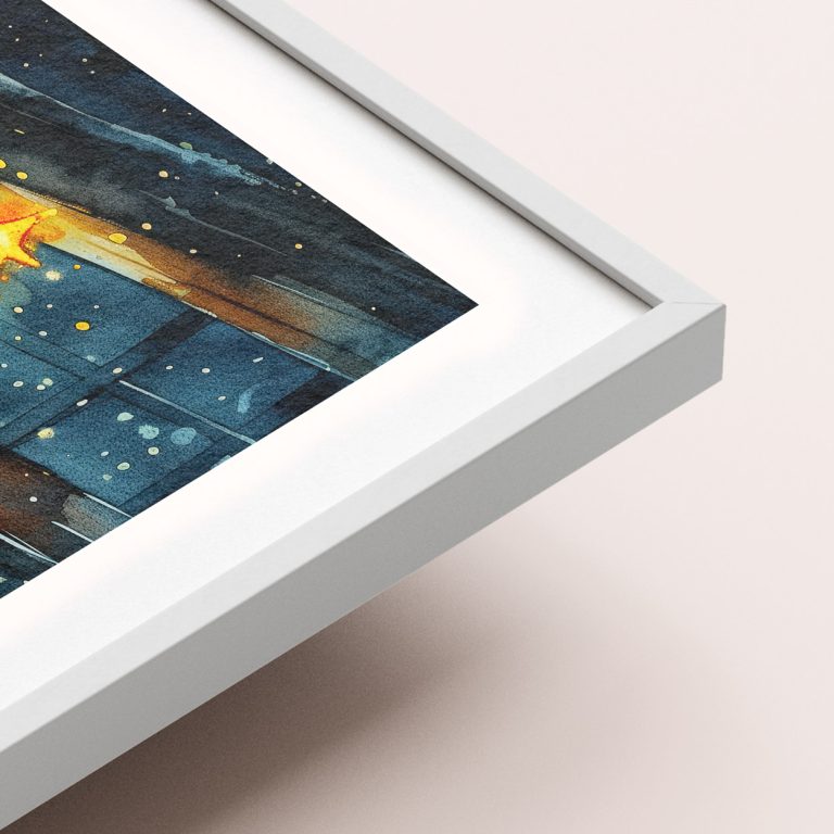 Η εκτύπωση γίνεται με eco μελάνια σε χαρτί υψηλής ποιότητας 200gr. με ματ φινίρισμα και η κορνίζα είναι από ξύλο πεύκου και πάχους 17mm x 17mm.