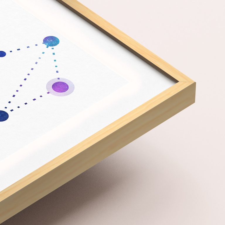 Η εκτύπωση γίνεται με eco μελάνια σε χαρτί υψηλής ποιότητας 200gr. με ματ φινίρισμα και η κορνίζα είναι από ξύλο πεύκου και πάχους 17mm x 17mm.