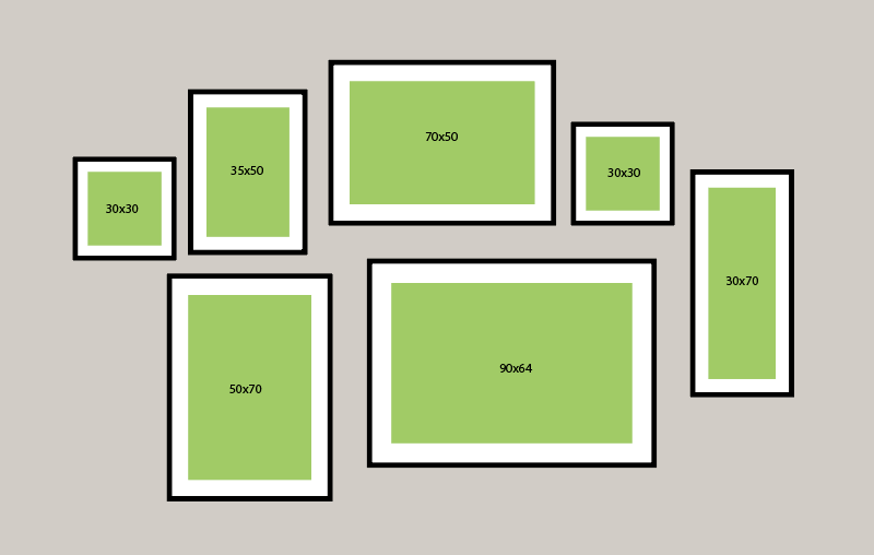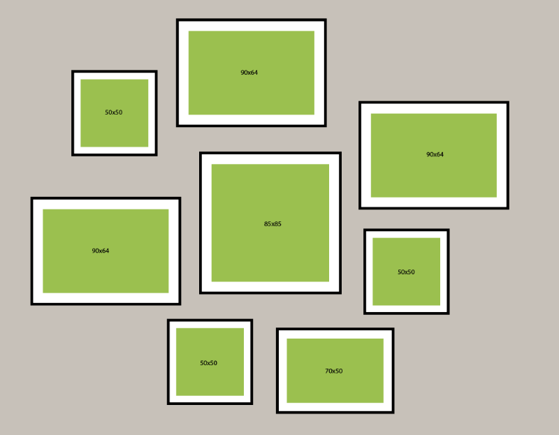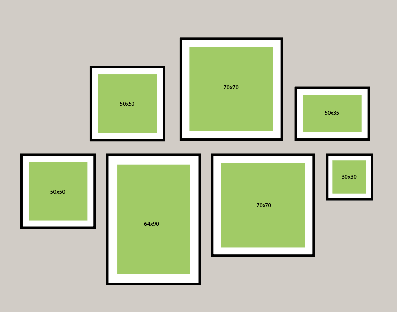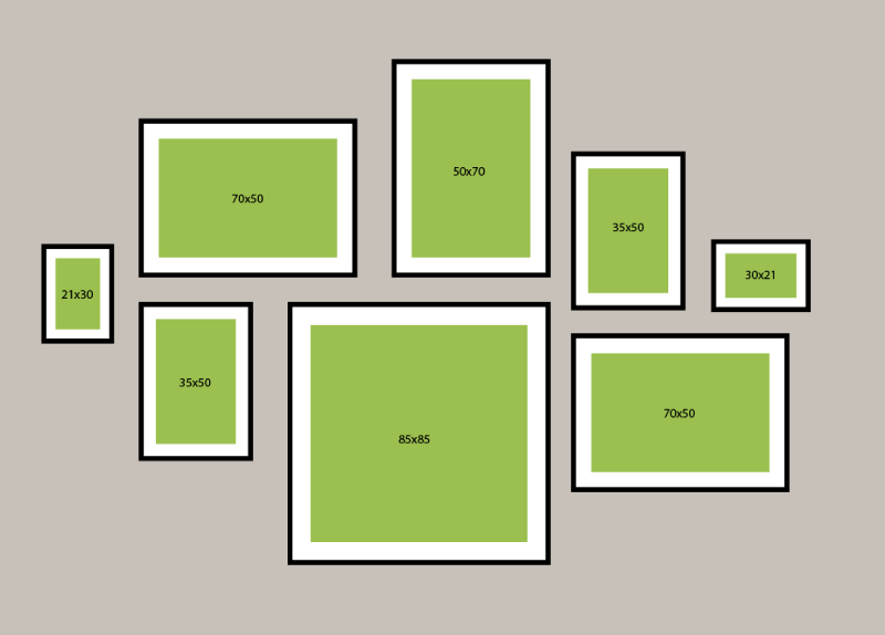1. Το σαλόνι είναι το ιδανικό μέρος για μια εντυπωσιακή σύνθεση κάδρων που τραβάει το βλέμμα. Αν θέλετε να τοποθετήσετε μια ωραία σύνθεση με posters πάνω από τον καναπέ σας, σας έχουμε ετοιμάσει κάποια προσχέδια ώστε να τα στήσετε σωστά και συμμετρικά. Δημιουργήστε ένα “τοίχο-γκαλερί” με πολλά κάδρα διαφορετικών μεγεθών.