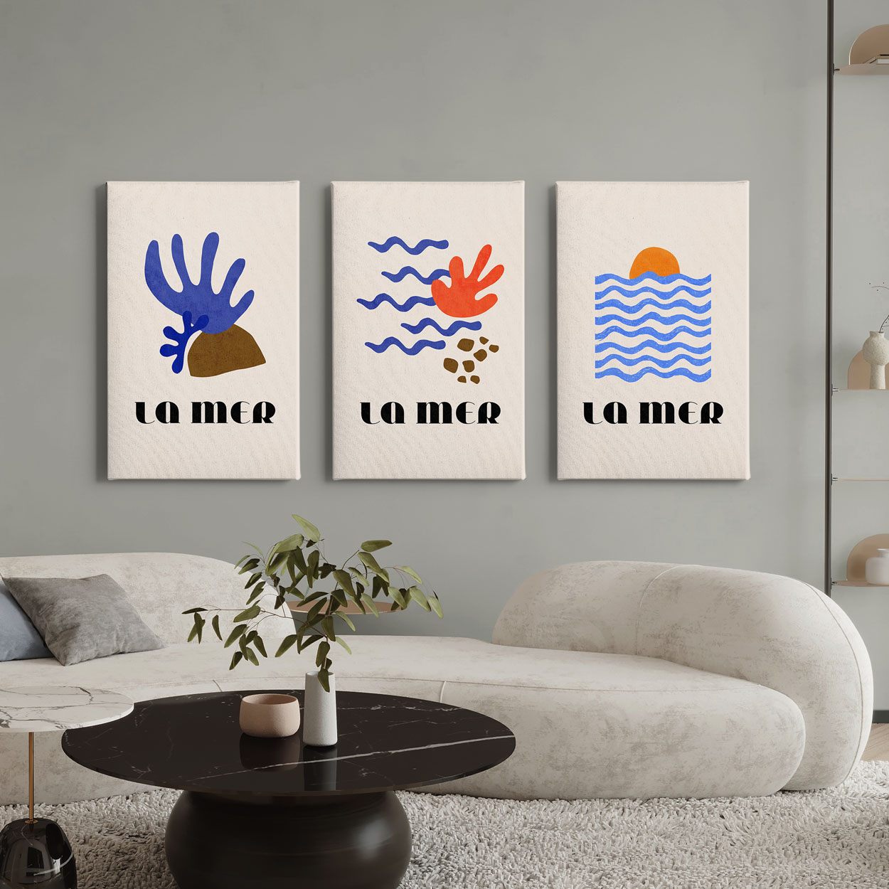 Ανανεώστε την αισθητική του χώρου σας με τη σύνθεση "La Mer Essence", ένα τρίπτυχο που υμνεί την απλότητα και την ομορφιά της θάλασσας. Με έντονη επιρροή από τη μοντέρνα αφηρημένη τέχνη, οι τρεις αυτοί πίνακες συνδυάζουν οργανικά σχήματα κοραλλιών, κυματισμούς και τον ήλιο που αναδύεται, σε μια παλέτα του μπλε, του κοραλλί και του κίτρινου πάνω σε vintage cream φόντο. Είναι η ιδανική επιλογή για να προσθέσετε μια σοφιστικέ, καλοκαιρινή αύρα στο σαλόνι ή το καθιστικό σας.