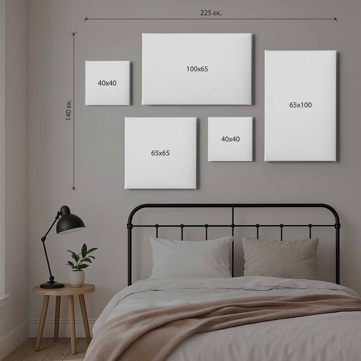 1 Επιλογή: 2 τμχ 40x40cm + 65x65cm + 100x65cm + 65x100cm.