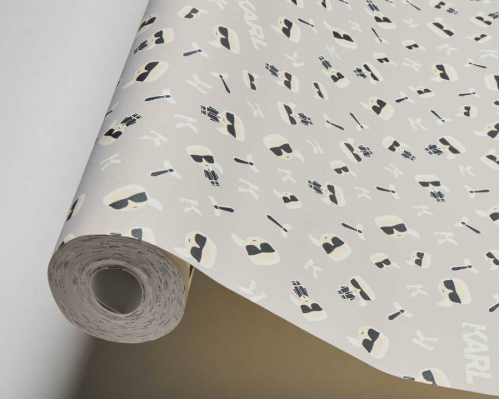 Μπεζ μοντέρνο μοτίβο με την φιγούρα του σχεδιαστή για την συλλογή Karl Lagerfeld.