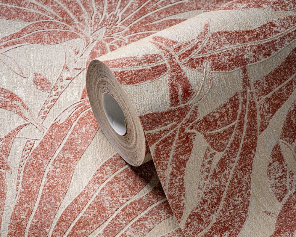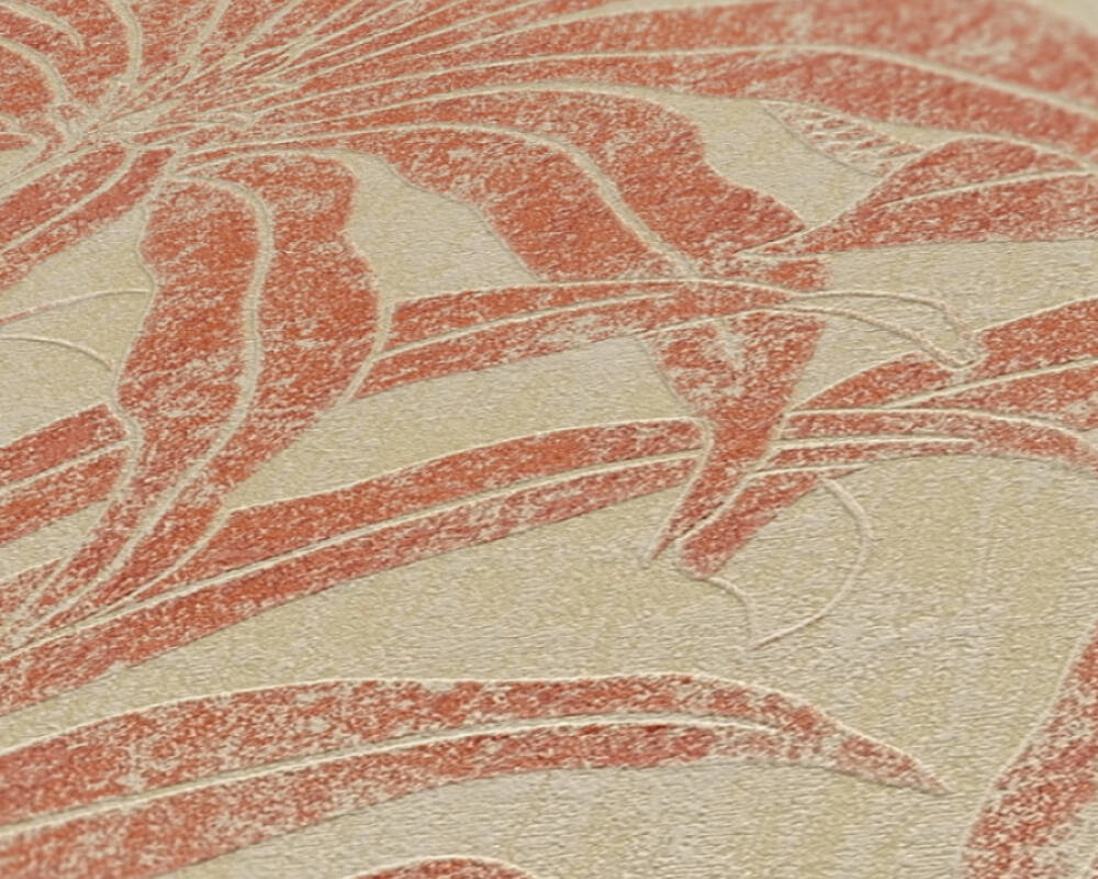 Εξωτικό φλοράλ μοτίβο σε μπεζ και κόκκινο με μεταλλικές αποχρώσεις  για την συλλογή Jade.