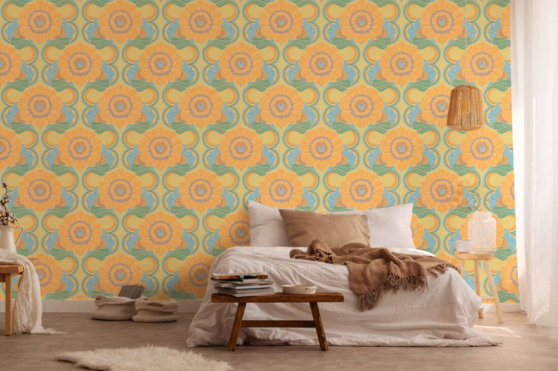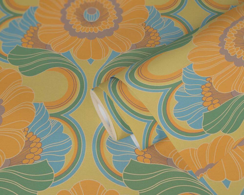 Φλοράλ μοτίβο σε πράσινες, πορτοκαλί και μπλε αποχρώσεις για την συλλογή Retro Chic.