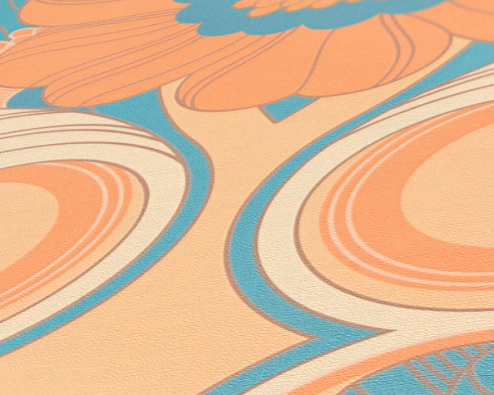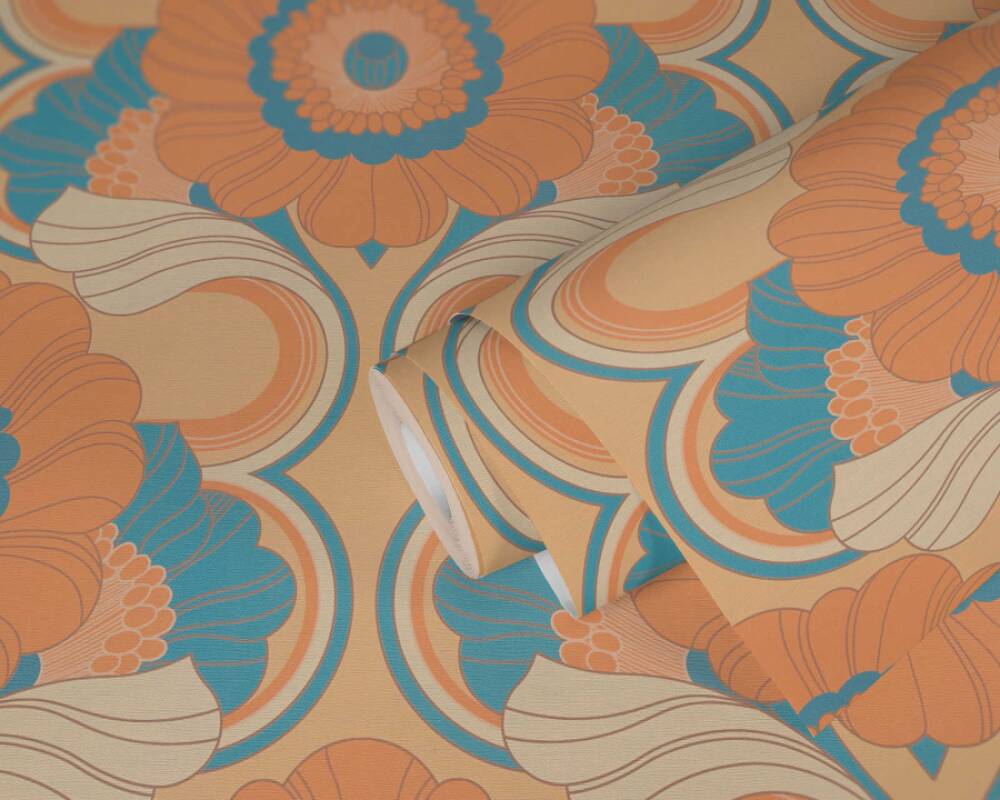 Φλοράλ μοτίβο σε μπεζ με πορτοκαλί και μπλε αποχρώσεις για την συλλογή Retro Chic.