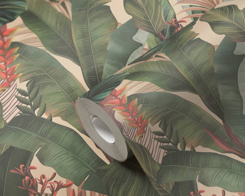 Στον κωδικό 394351 θα βρείτε ένα εξωτικό φλοράλ μοτίβο. Οι ταπετσαρίες "Drawn into Nature" κατασκευασμένες από την εταιρεία Livingwalls σας ταξιδεύουν στην Κόστα Ρίκα. Η συλλογή διαθέτει ζωντανά σχέδια εμπνευσμένα από τη συναρπαστική χλωρίδα και πανίδα της Κόστα Ρίκα. Διάφορα βοτανικά μοτίβα με φύλλα, λουλούδια και ζώα, καθώς και αυθεντικά χρώματα από τη φύση μεταμορφώνουν τους τοίχους σας σε στυλ αστικής ζούγκλας. Οι απλές ταπετσαρίες που ταιριάζουν στα χρώματα ολοκληρώνουν αρμονικά τη φυσιολατρική, εξωτική συλλογή.