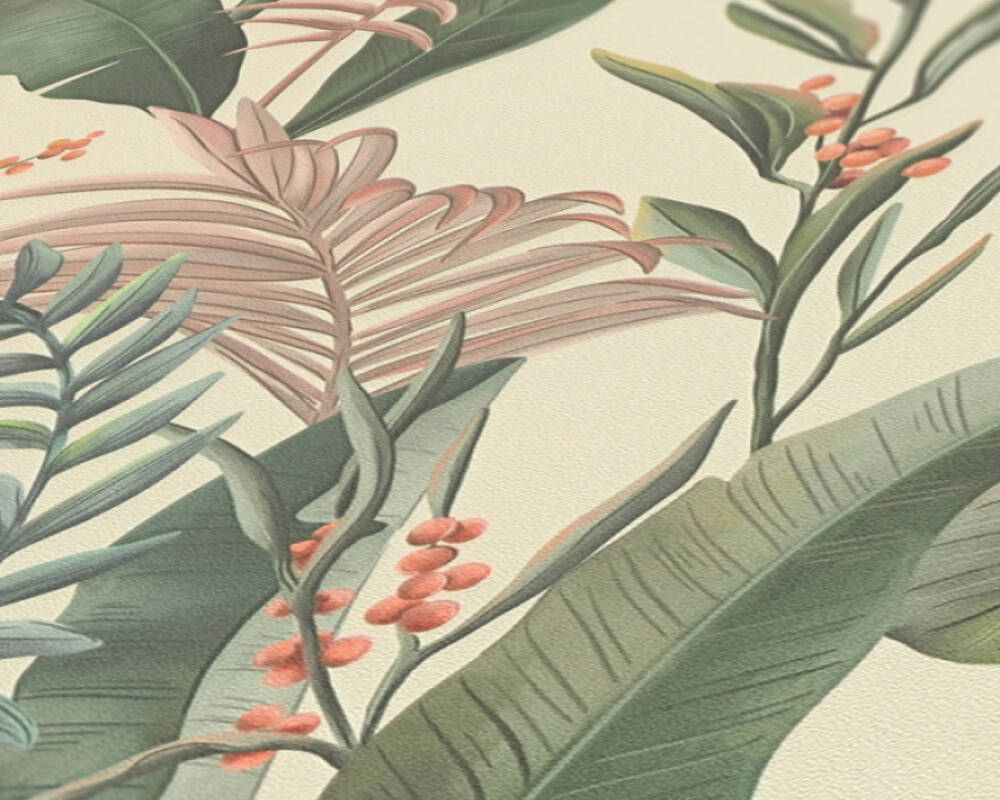 Στον κωδικό 394361 θα βρείτε ένα εξωτικό φλοράλ μοτίβο. Οι ταπετσαρίες "Drawn into Nature" κατασκευασμένες από την εταιρεία Livingwalls σας ταξιδεύουν στην Κόστα Ρίκα. Η συλλογή διαθέτει ζωντανά σχέδια εμπνευσμένα από τη συναρπαστική χλωρίδα και πανίδα της Κόστα Ρίκα. Διάφορα βοτανικά μοτίβα με φύλλα, λουλούδια και ζώα, καθώς και αυθεντικά χρώματα από τη φύση μεταμορφώνουν τους τοίχους σας σε στυλ αστικής ζούγκλας. Οι απλές ταπετσαρίες που ταιριάζουν στα χρώματα ολοκληρώνουν αρμονικά τη φυσιολατρική, εξωτική συλλογή.