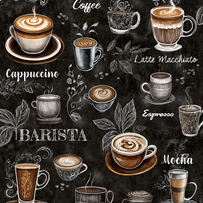 Καφέ, Κρέμ, Μαύρο σχέδιο με θέμα τον καφέ από τη συλλογή Naomi.
