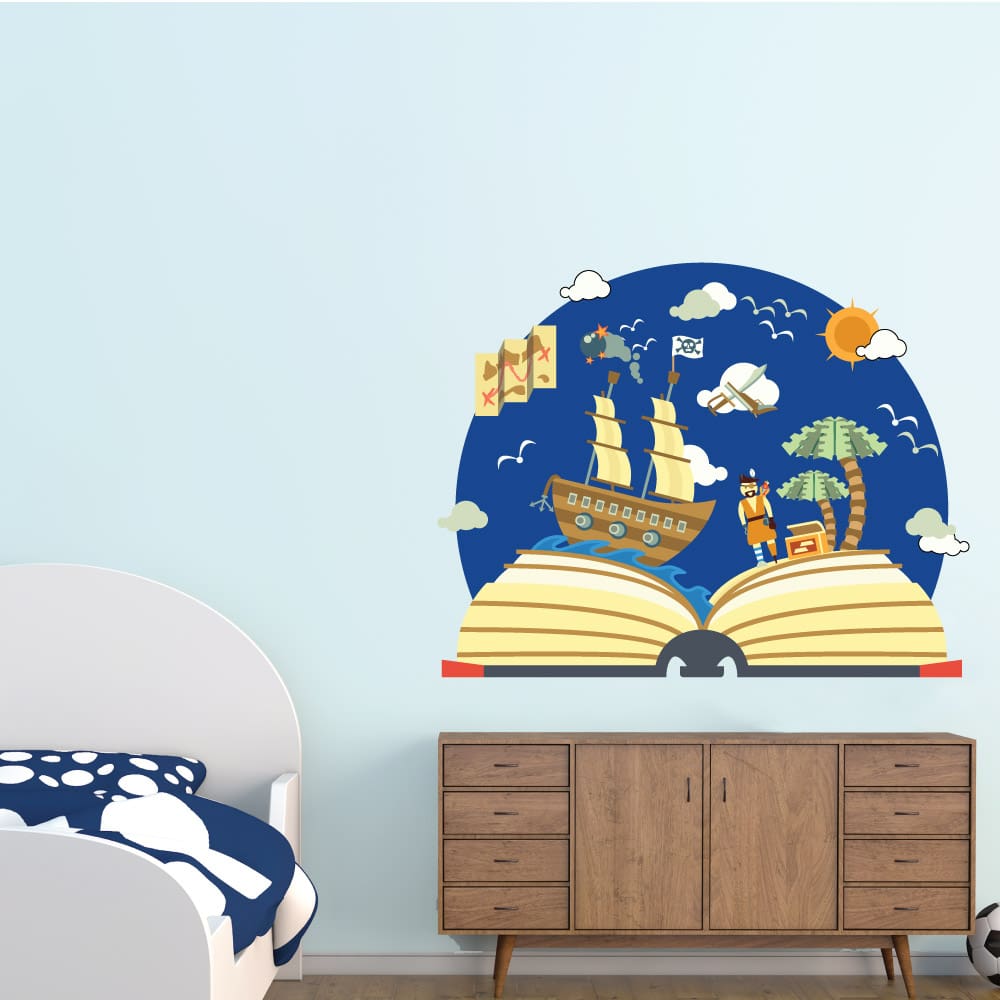Αυτοκόλλητο για παιδικό δωμάτιο παραμύθι με πειρατές και όμορφη μπλε θάλασσα.