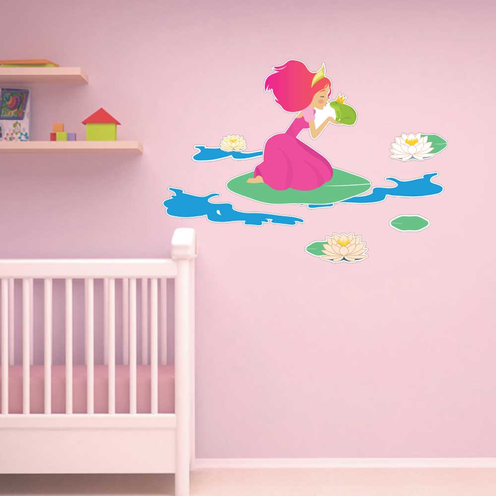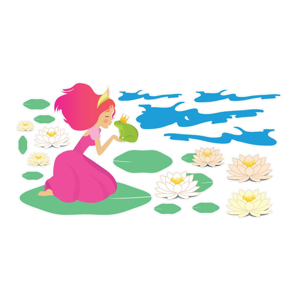 Αυτοκόλλητο για παιδικό δωμάτιο πριγκίπισσα και βάτραχος στην λίμνη με τα νούφαρα.