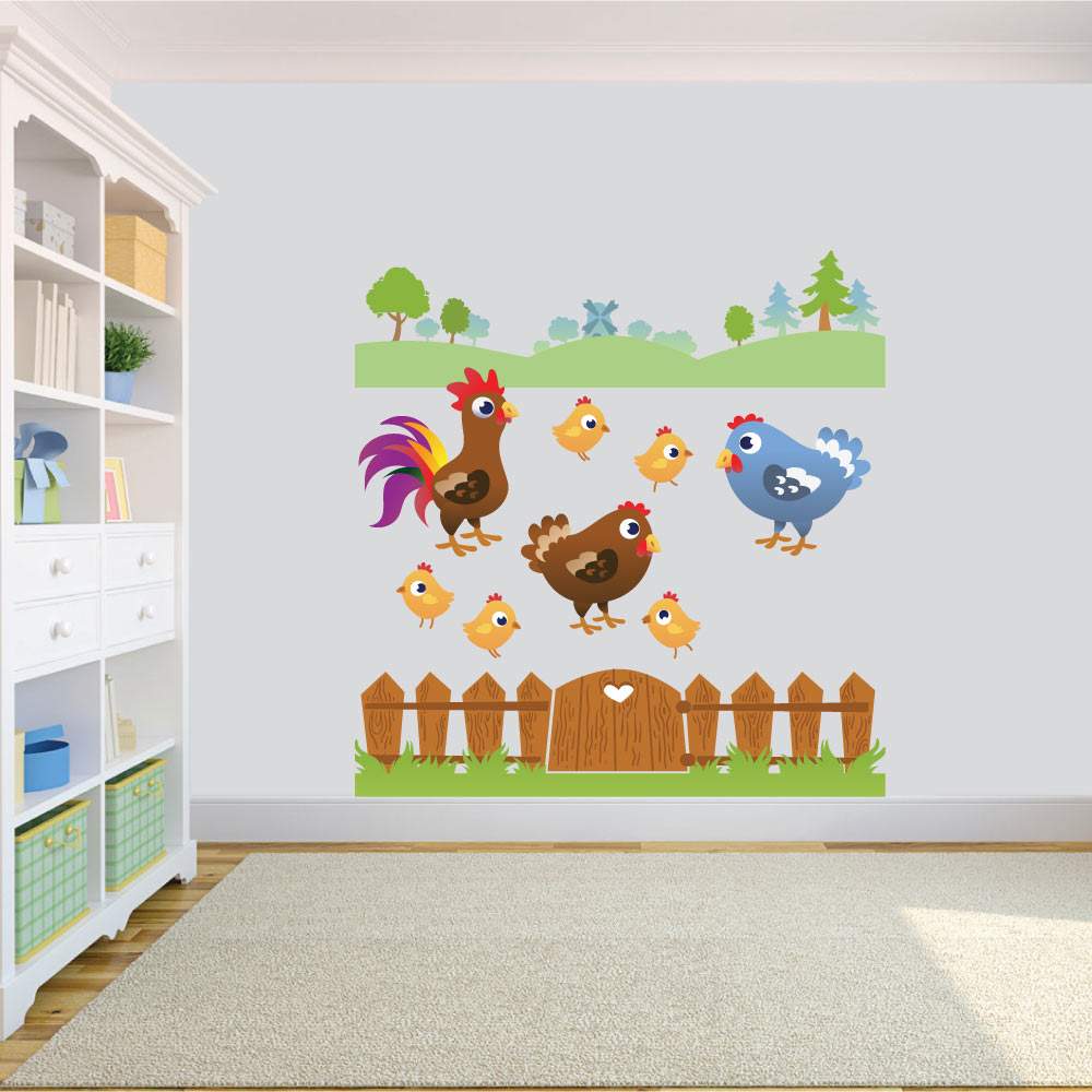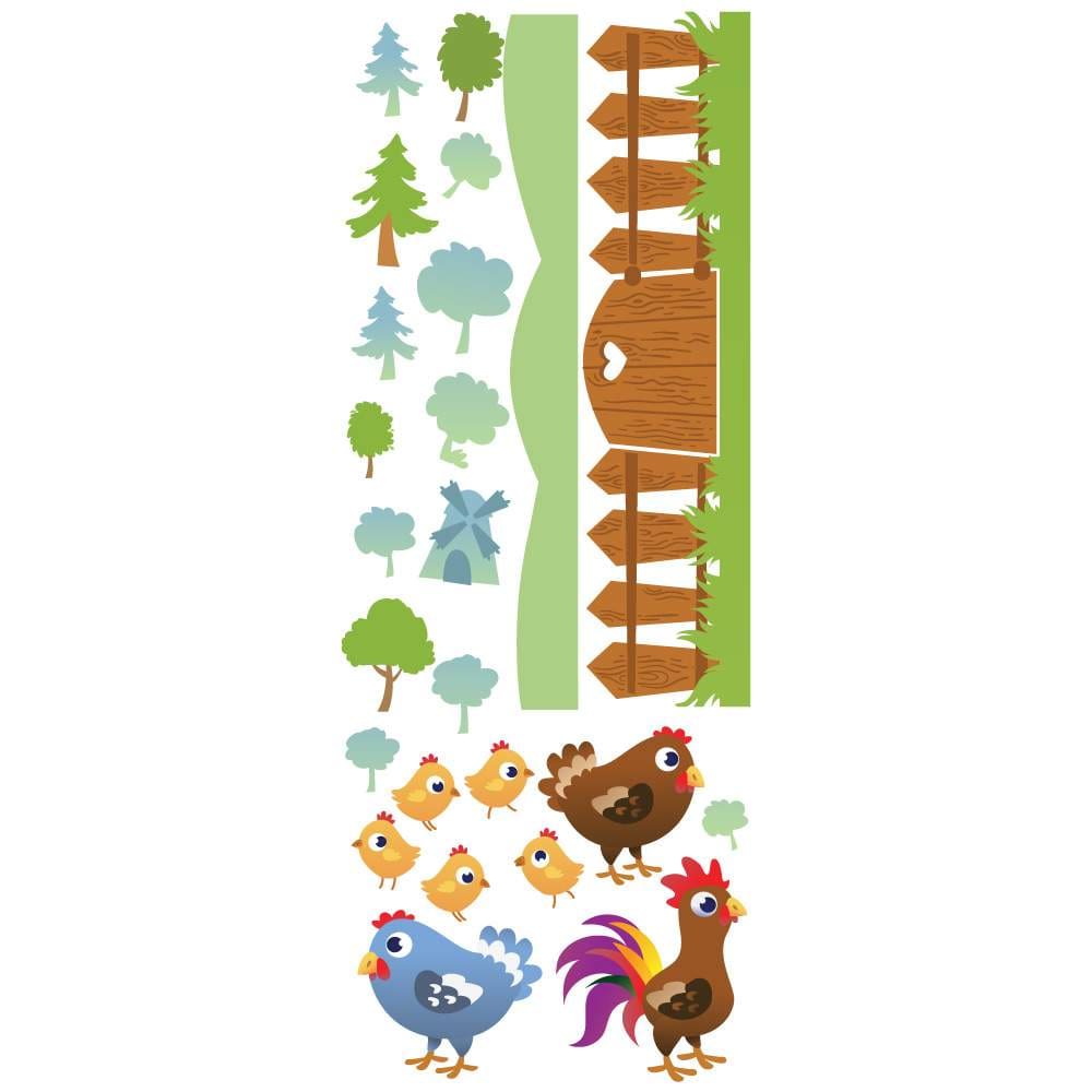 Αυτοκόλλητο για παιδικό δωμάτιο φράχτης απο φάρμα με κοτούλες και κοτοπουλάκια.