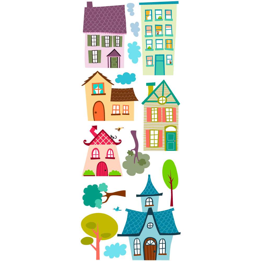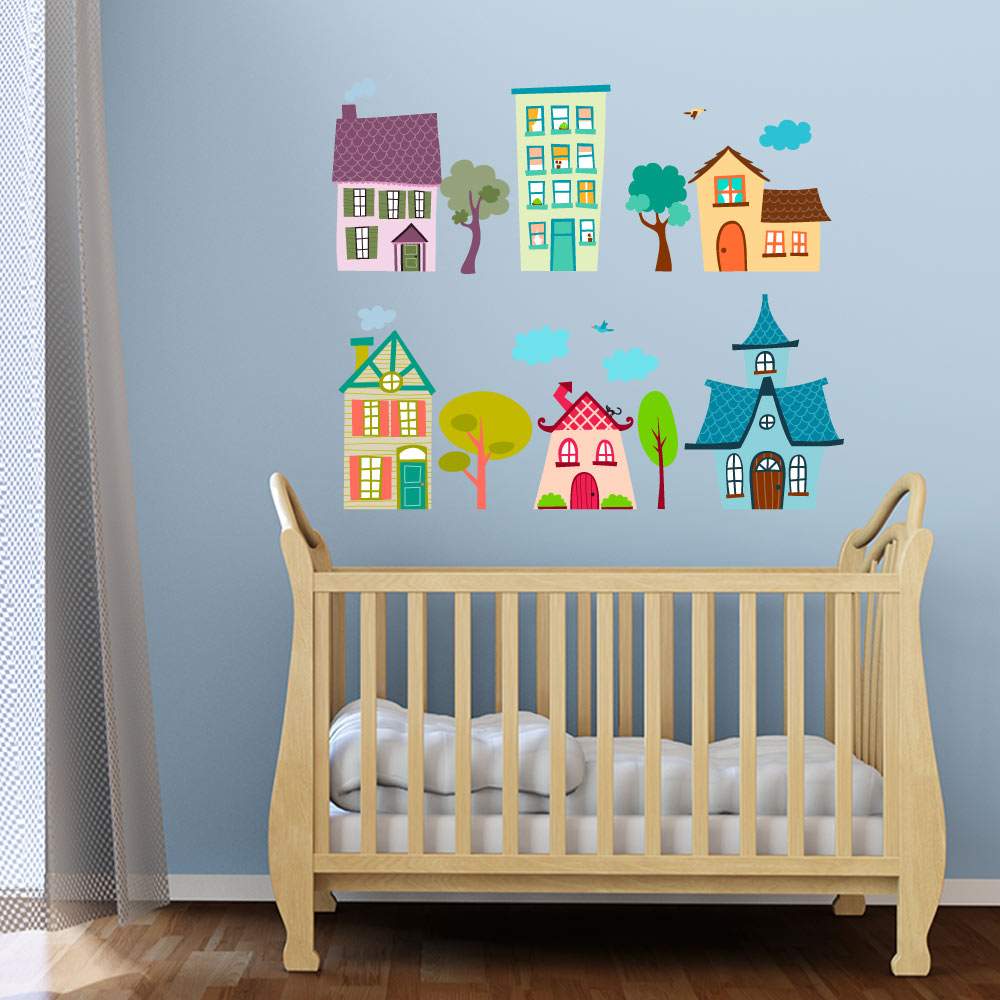 Αυτοκόλλητο για παιδικό δωμάτιο σπιτάκια και πολυκατοικίες.