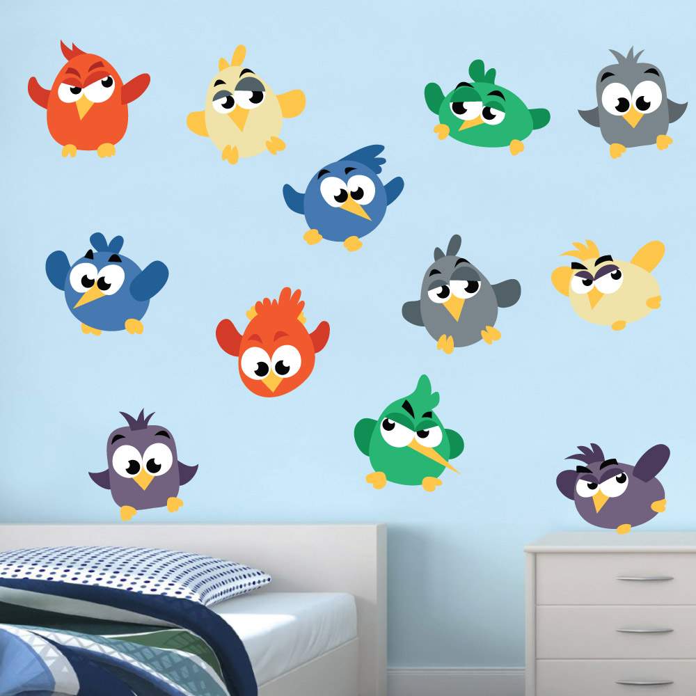 Αυτοκόλλητο για παιδικό δωμάτιο πουλάκια σε πολλά χρώματα με αστείες γκριμάτσες.