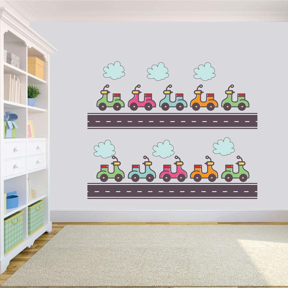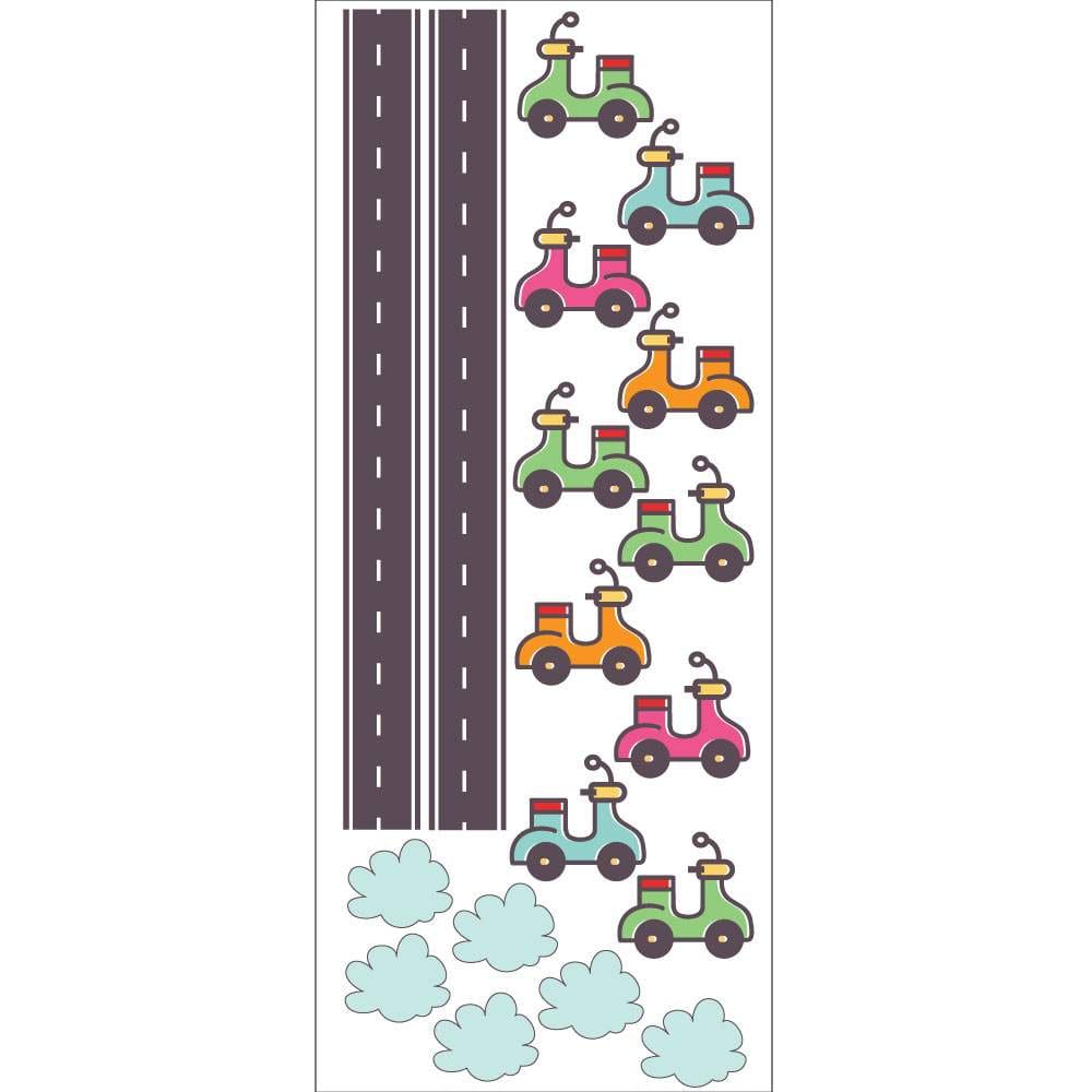 Αυτοκόλλητο για παιδικό δωμάτιο δρόμοι με πολύχρωμες βέσπες και συννεφάκια.
