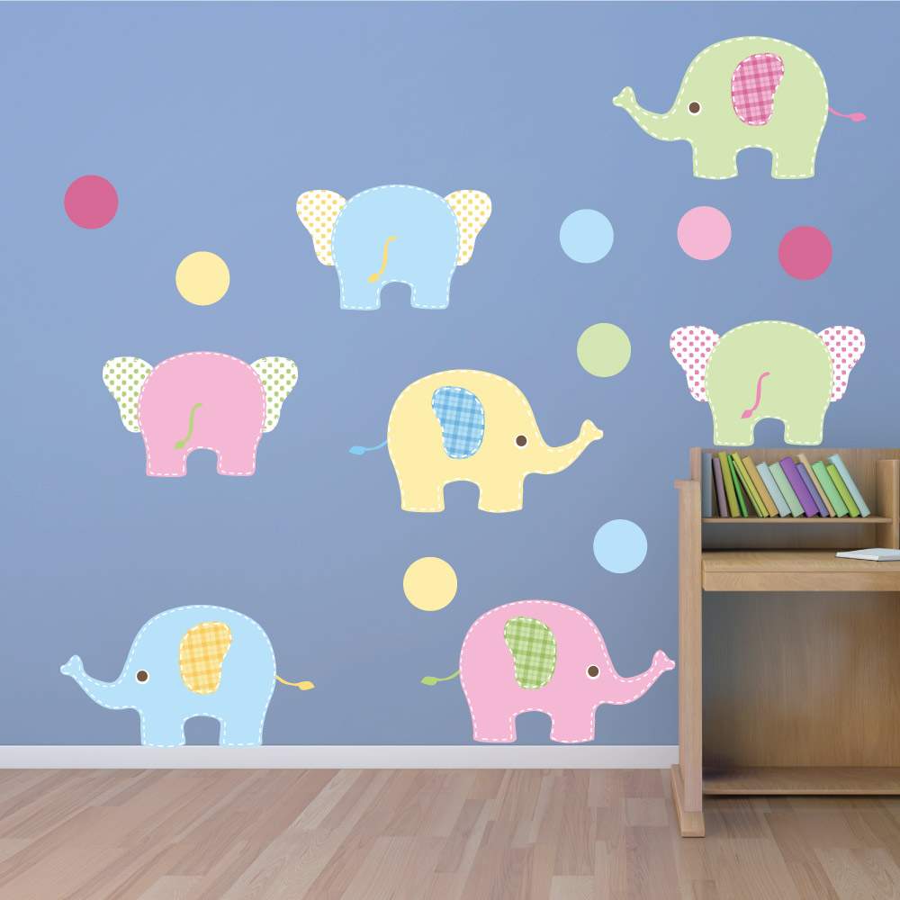 Αυτοκόλλητο για παιδικό δωμάτιο ελεφαντάκια και κύκλοι σε παστελ αποχρώσεις.