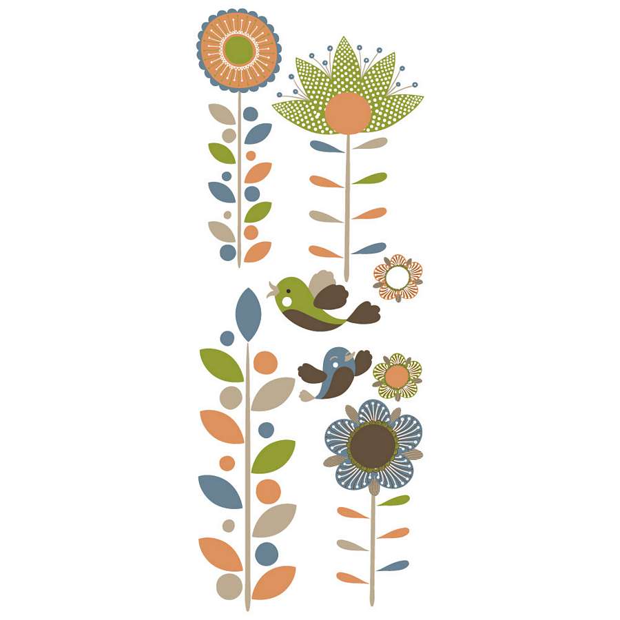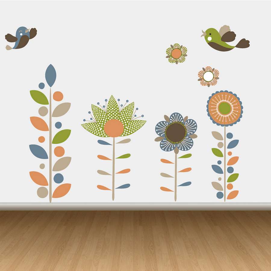 Αυτοκόλλητο για παιδικό δωμάτιο πολύχρωμα λουλουδάκια και πουλάκια.