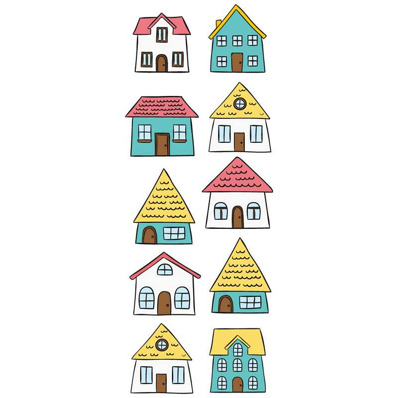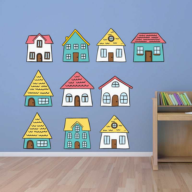 Αυτοκόλλητο για παιδικό δωμάτιο σπιτάκια σε διάφορα σχέδια και χρώματα.