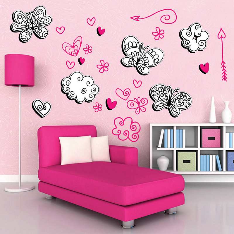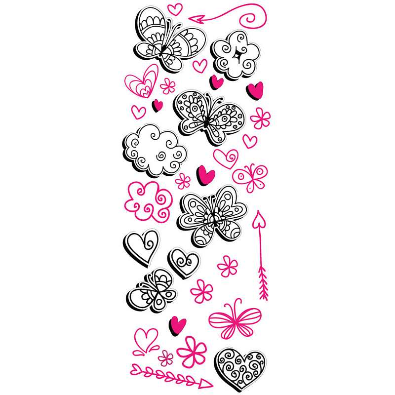Αυτοκόλλητο για παιδικό δωμάτιο ασπρόμαυρες πεταλούδες και συννεφάκια και καρδούλες.