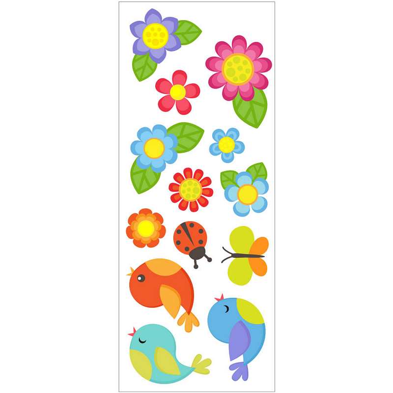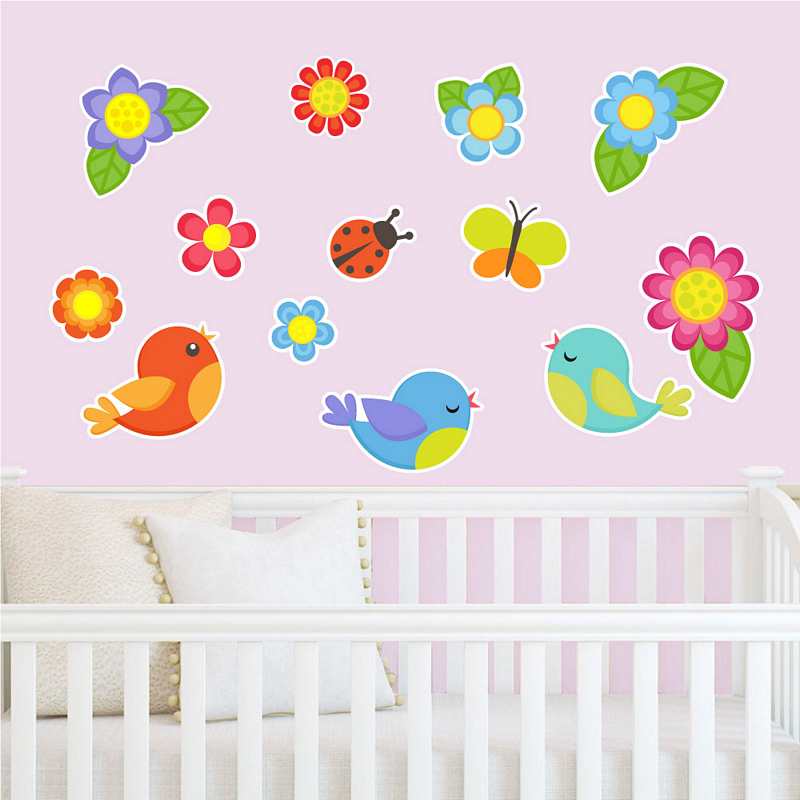 Αυτοκόλλητο για παιδικό δωμάτιο πολύχρωμα πουλάκια και λουλουδάκια.