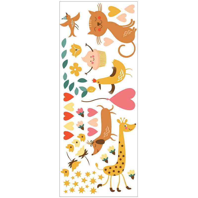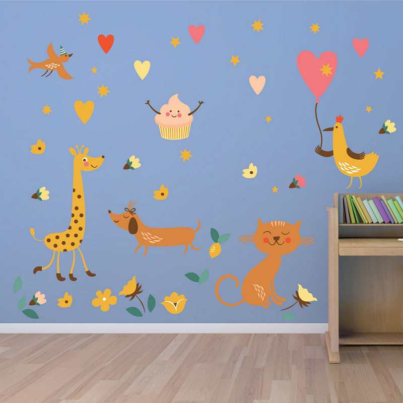 Αυτοκόλλητο για παιδικό δωμάτιο χαρούμενα ζωάκια, λουλουδάκια και καρδούλες.