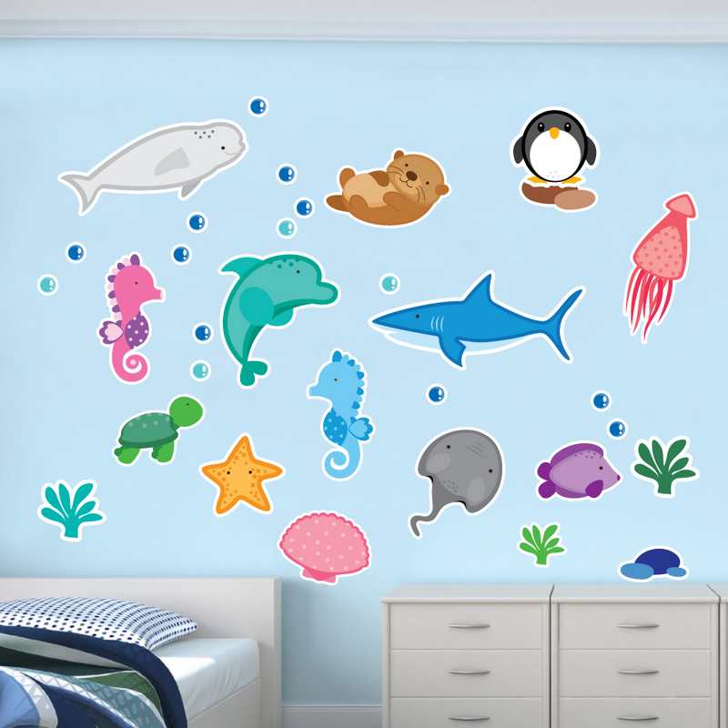 Αυτοκόλλητο για παιδικό δωμάτιο ψαράκια και κοχύλια για μια ξεχωριστή διακόσμιση.