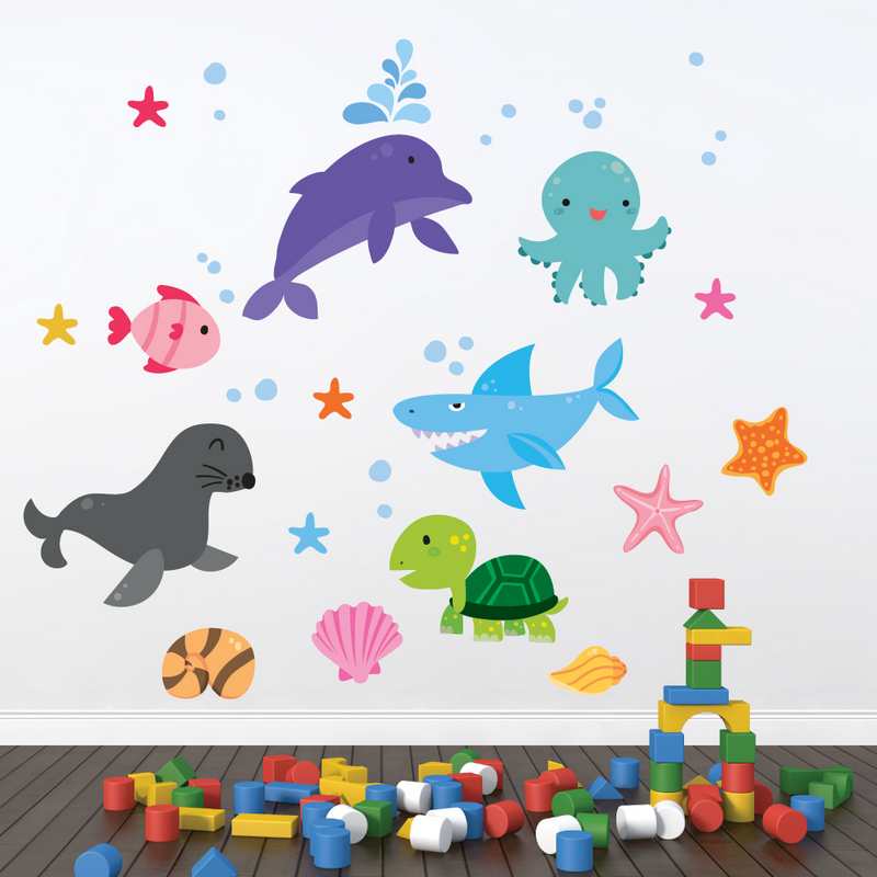 Αυτοκόλλητο για παιδικό δωμάτιο ψαράκια και κοχύλια για μια ξεχωριστή διακόσμιση.