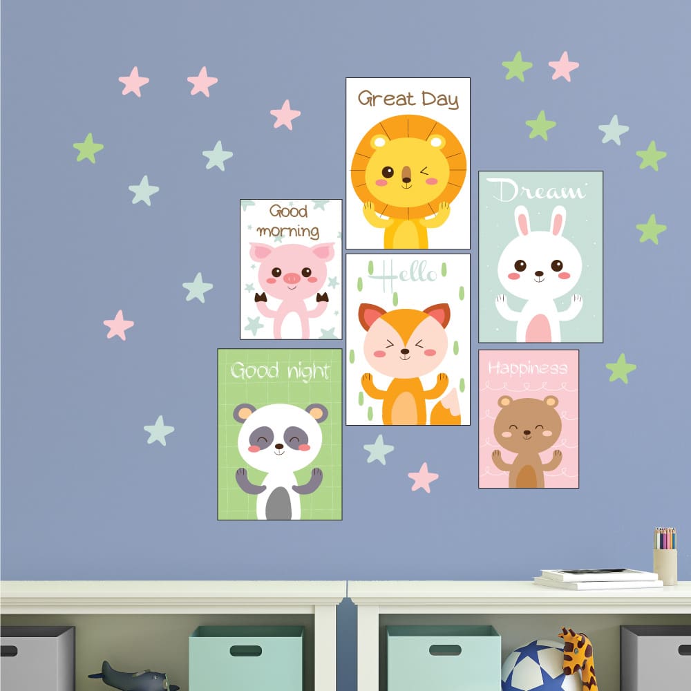 Αυτοκόλλητο για παιδικό δωμάτιο χαρούμενα ζωάκια με διάφορες γκριμάτσες.