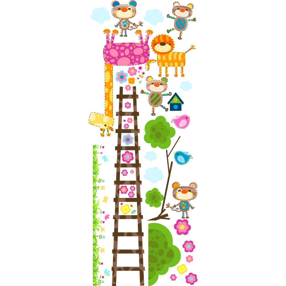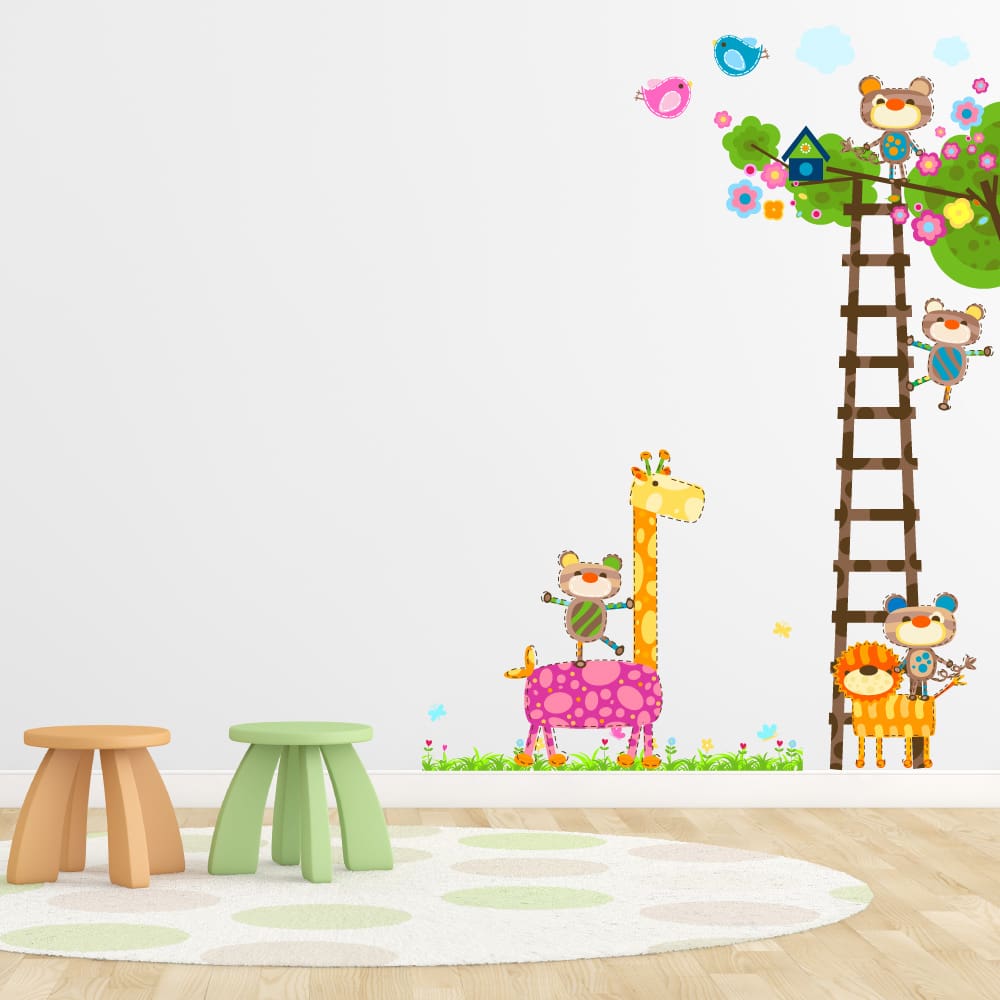 Αυτοκόλλητο για παιδικό δωμάτιο πολύχρωμα ζωάκια που ανεβαίνουν στο δέντρο με ξύλινη σκάλα.