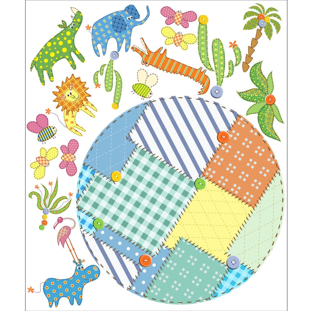 Αυτοκόλλητο τοίχου για το παιδικό δωμάτιο. Το βινύλιο είναι σατινέ και έχει λεία υφή ενώ το ύφασμα είναι ματ και έχει την υφή της πλέξης του υφασμάτος. Το ύφασμα επανατοποθετείτε πολύ εύκολα. Φροντίστε να είναι καθαρή από σκόνες η επιφάνεια που θα κολληθούν και τοποθετήστε τα μαζί με το παιδί σας!