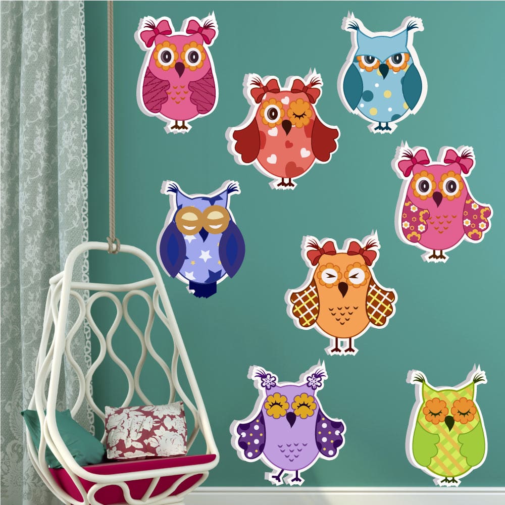 Αυτοκόλλητο για παιδικό δωμάτιο γκριμάτσες απο πολύχρωμες κουκουβάγιες.