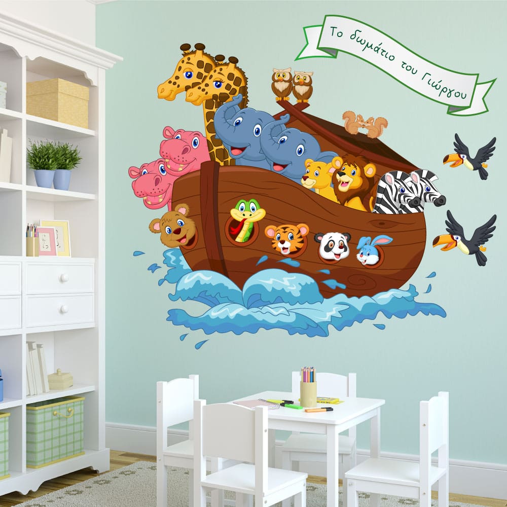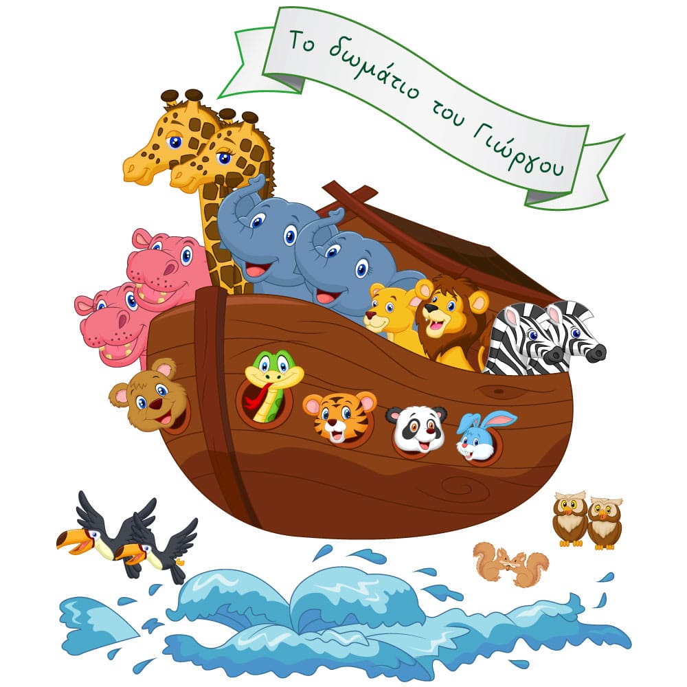 Αυτοκόλλητο για παιδικό δωμάτιο όλα τα ζωάκια μέσα στην κιβωτό του Νώε.